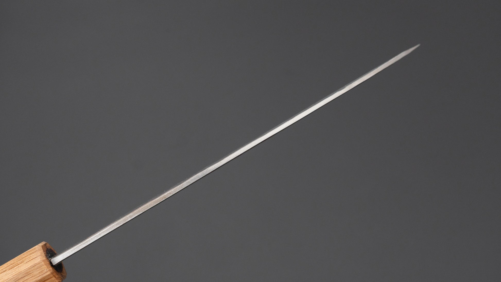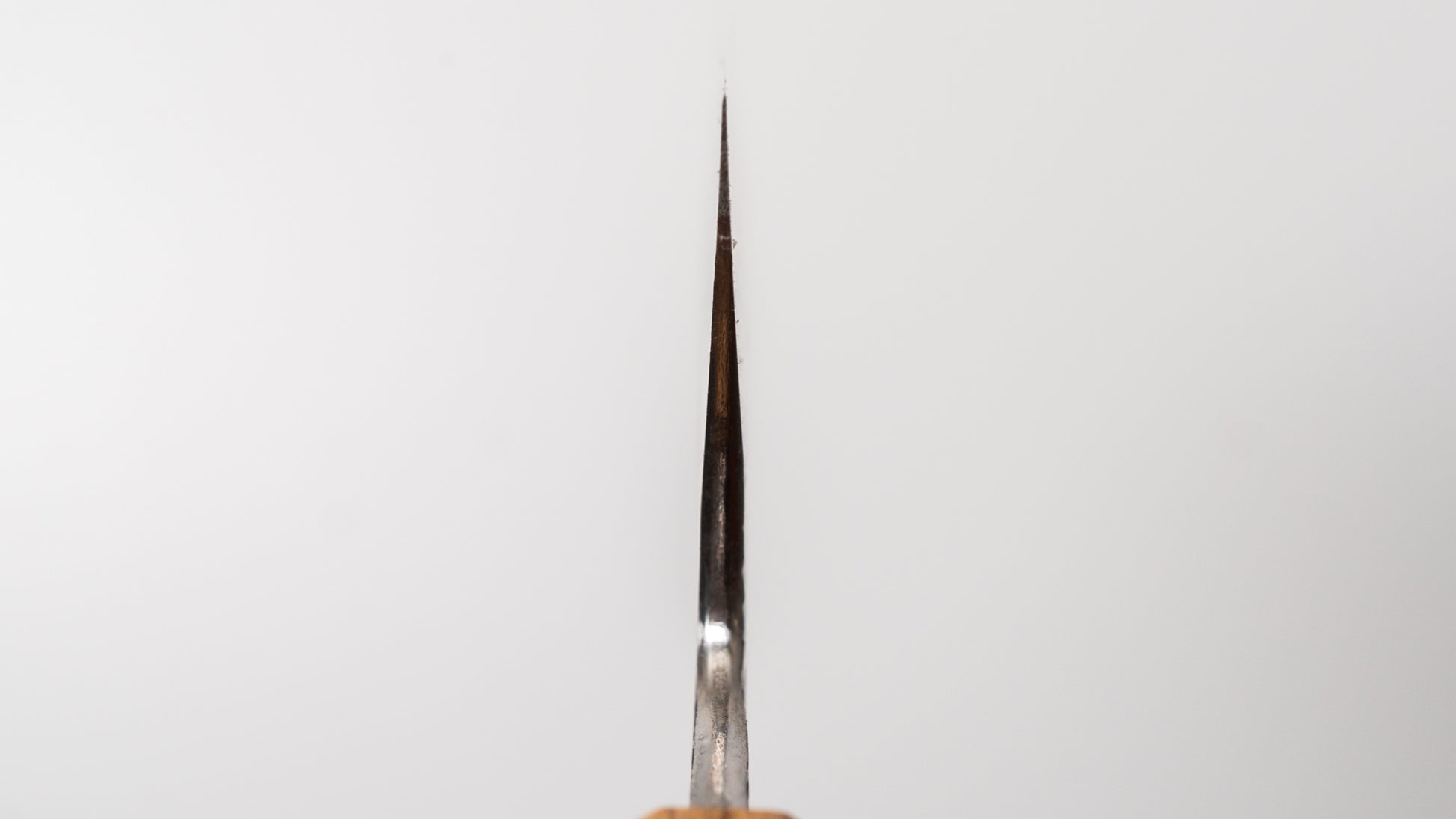 The Santoku is every bit as versatile as a Gyuto, but it’s more at home in everyday cooking. Probably the most used to-go knife at home. It’s easy to handle, super nimble, and great for just about any kitchen task.