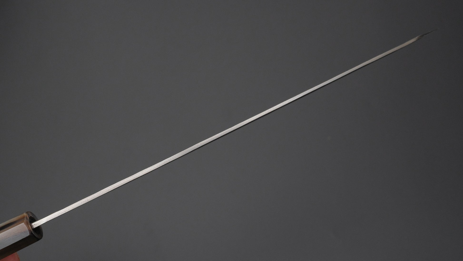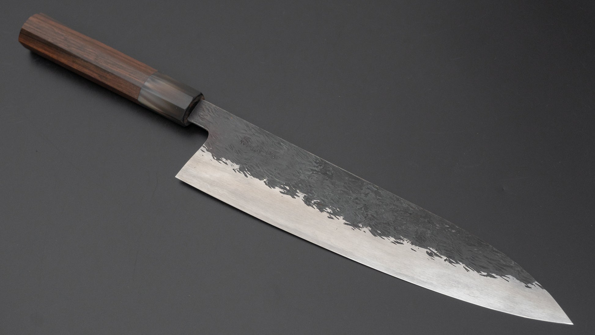Isamitsu Blue Super Stainless Clad Kurouchi Gyuto 240mm Taihei Makassar Ebony Handle