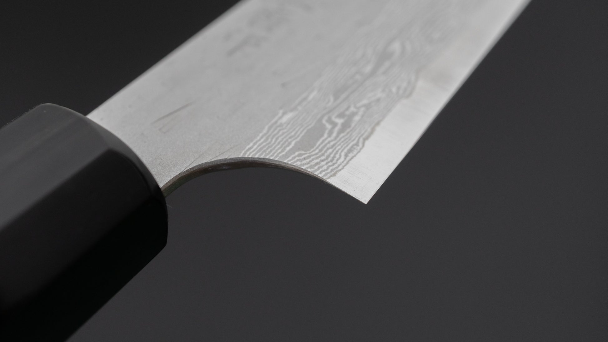Petty knives (Utilty) have a similar profile as the Gyuto but smaller, commonly ranging from 12 to 15cm. A shape most often used next to any larger all-purpose blade (gyuto & santoku) although there are many households where this is the go-to knife. Very suitable for the smaller cutting tasks such as cleaning, portioning and peeling fruits and vegetables and cleaning smaller cuts of meat or fish.