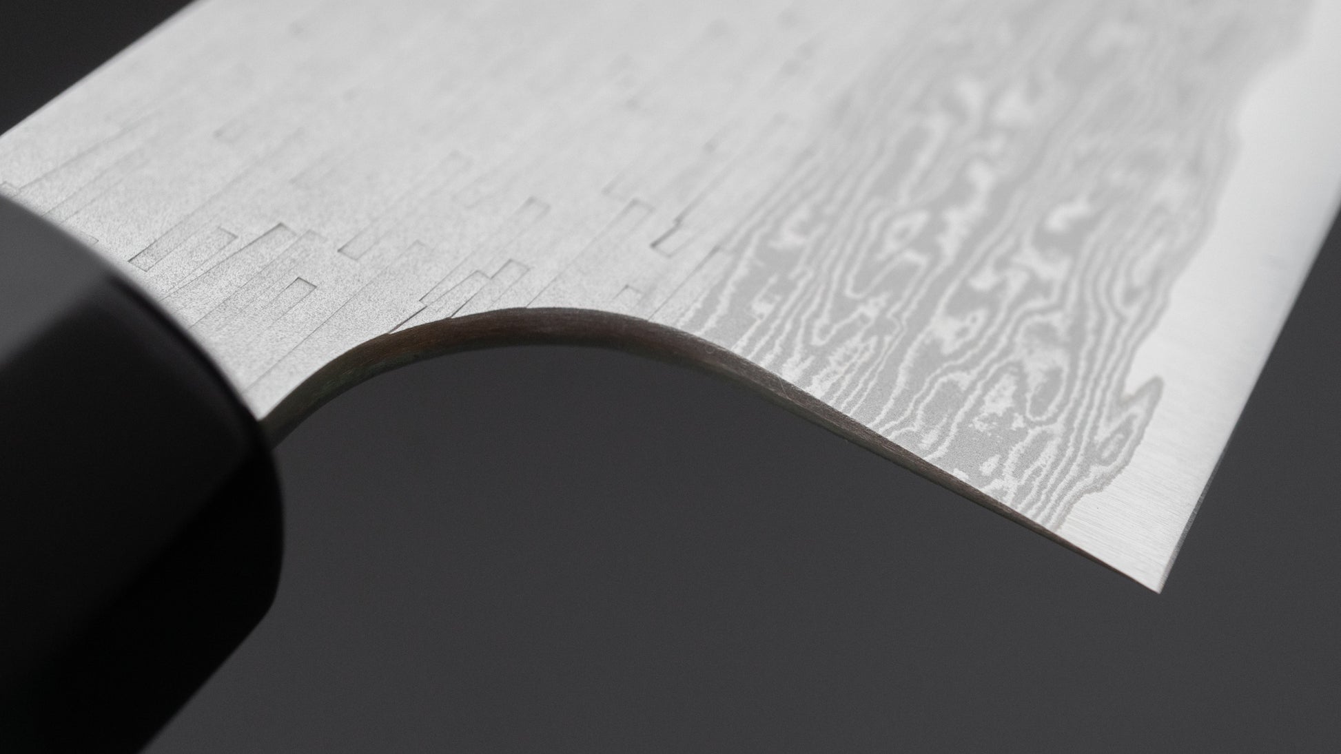 The knives are made with VG-XEOS steel, a stainless steel developed by Takefu Steel Co. Known for its corrosion and wear resistance, VG-XEOS also features a fine grain structure that helps maintain a sharp edge over time.