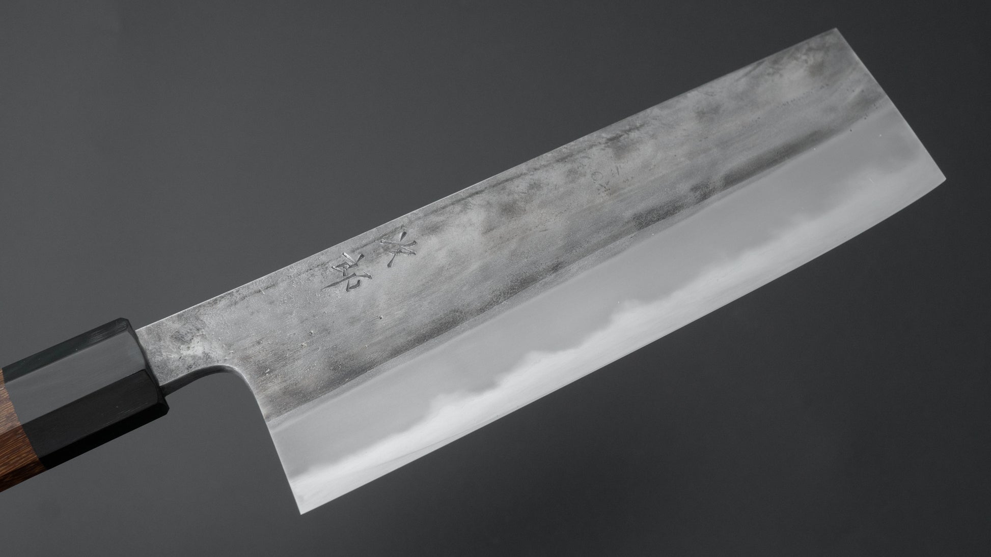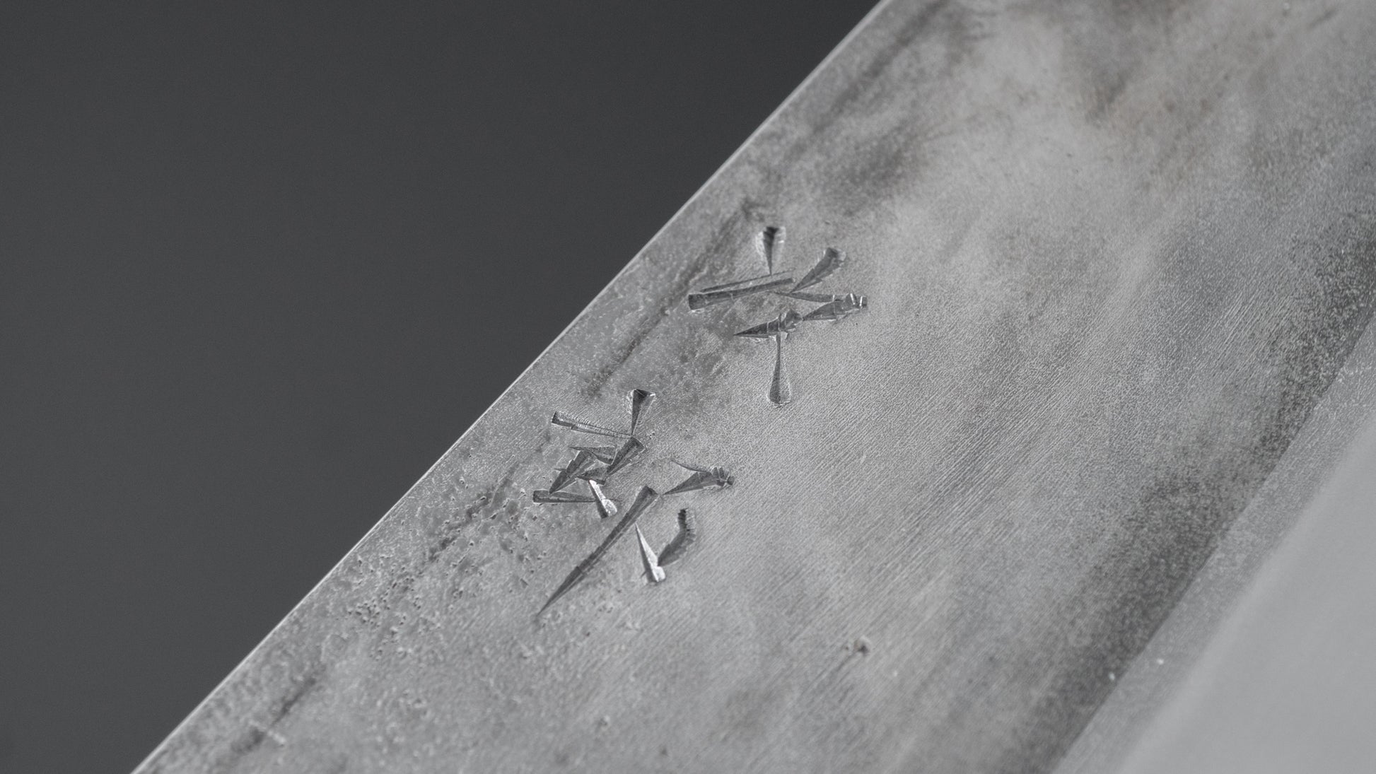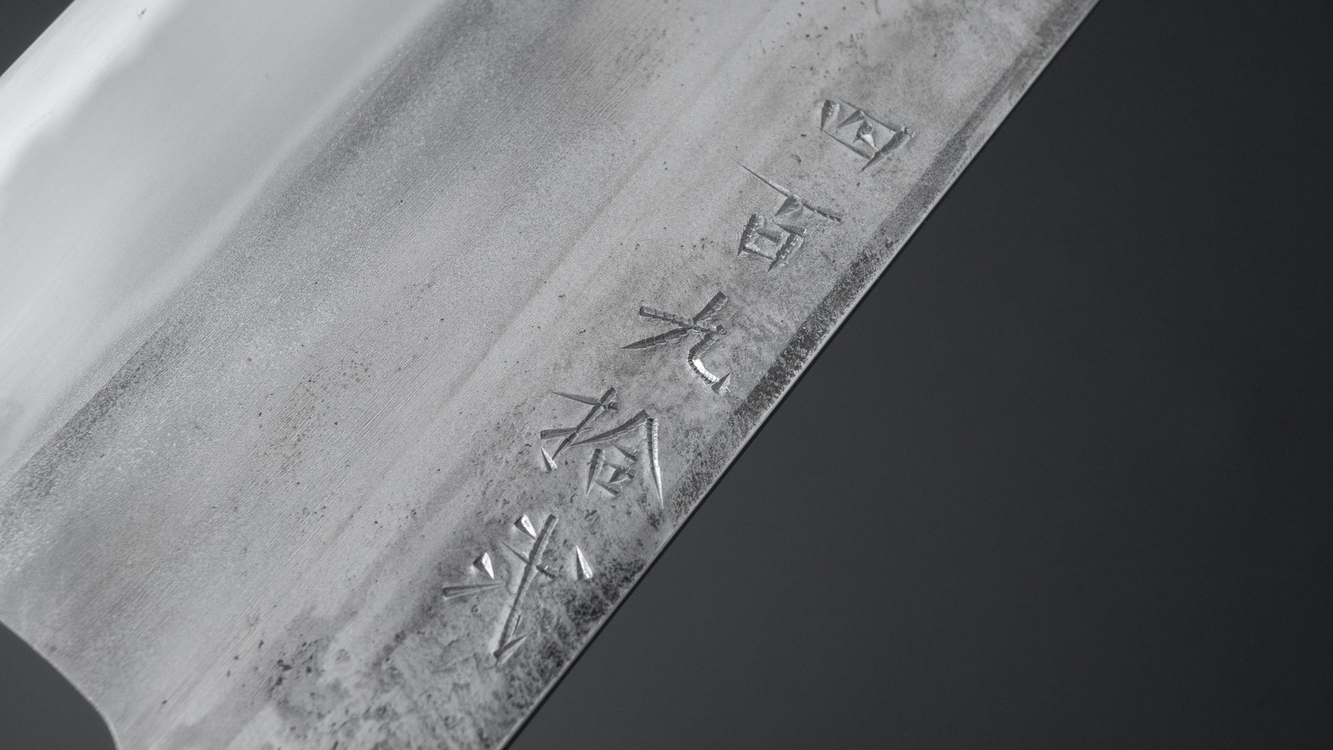 His knives are made from Shirogami No.1 carbon steel, one of the purest carbon steels used in modern knife making. Jiro-san takes on the forge welding himself, skillfully combining the harder core with the softer iron cladding. By managing the entire process in-house, he has full control over every detail, allowing him to forge each knife at the ideal temperature. It’s rare to find knives made without pre-laminated steel, but Jiro-san’s knives feature a thick spine that can only be achieved through his dedicated craftsmanship.