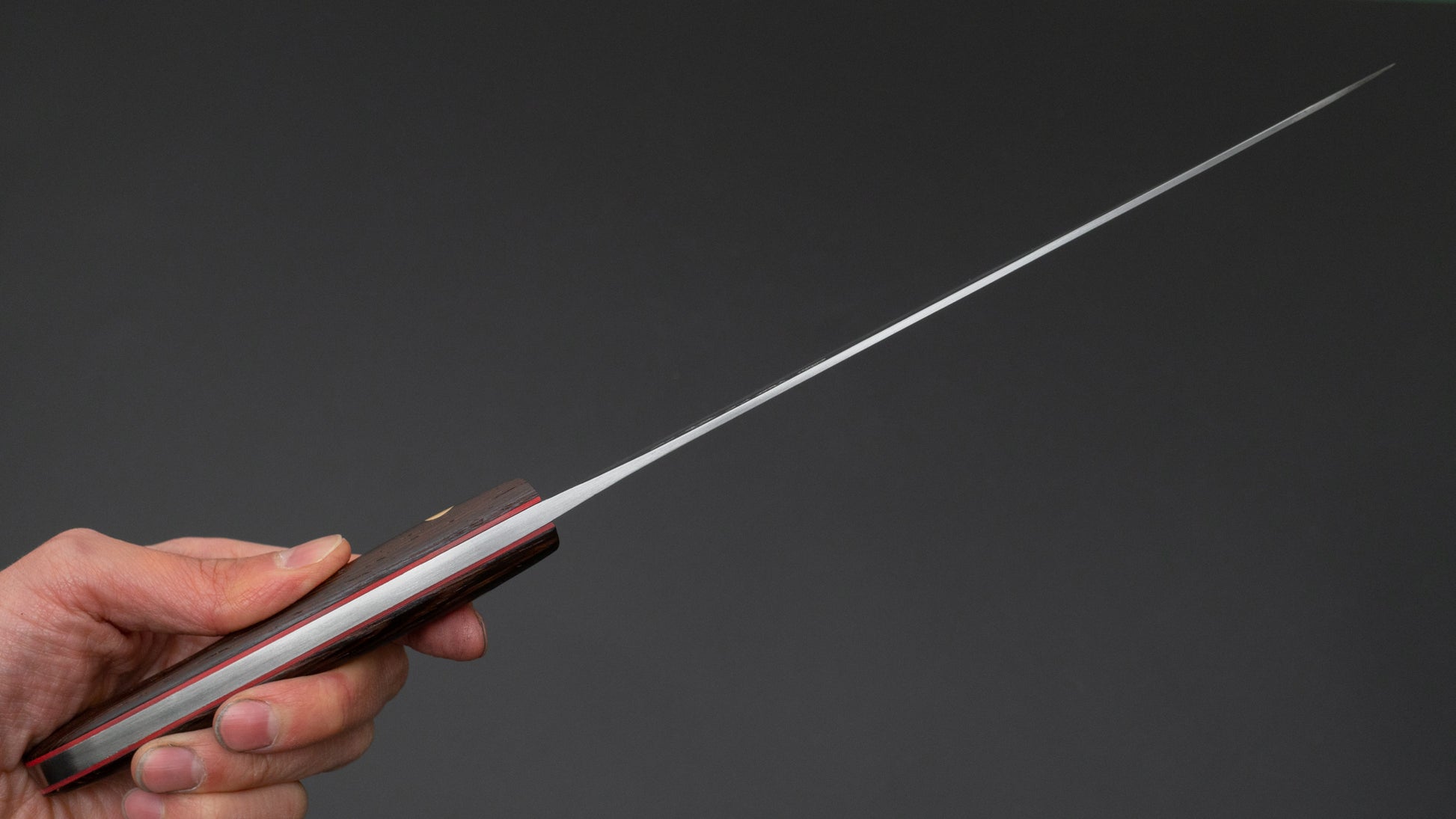 The knives crafted by Jiro-san are the most special we carry in the store. They embody the traditional craftsmanship that Japan is so famous for and represent the pinnacle of quality. Due to the high demand for his work, obtaining one can be a challenge. Out of respect for the quality and the craftsman, we always do our best to ensure that each knife finds a suitable home. We want these knives to be used and cherished for decades, rather than being resold by someone just looking to make a quick profit.