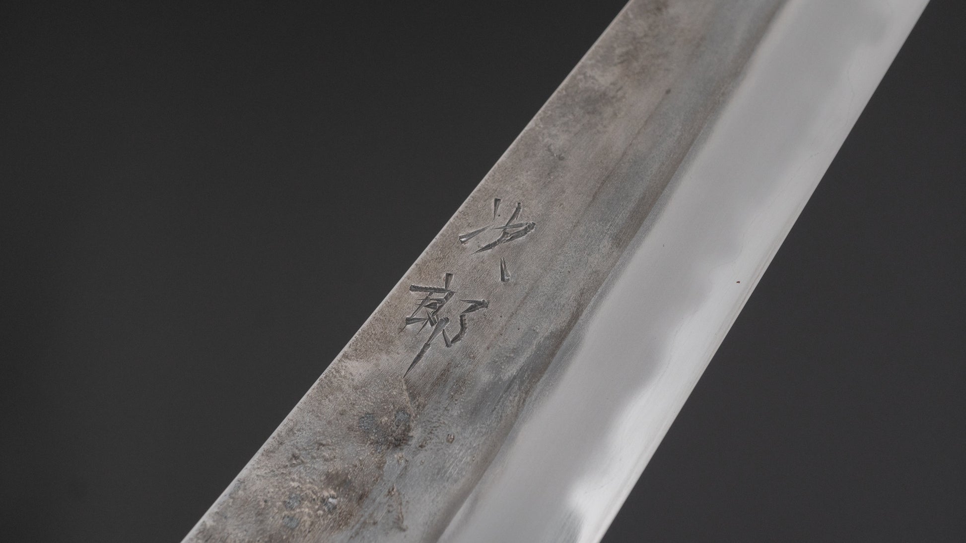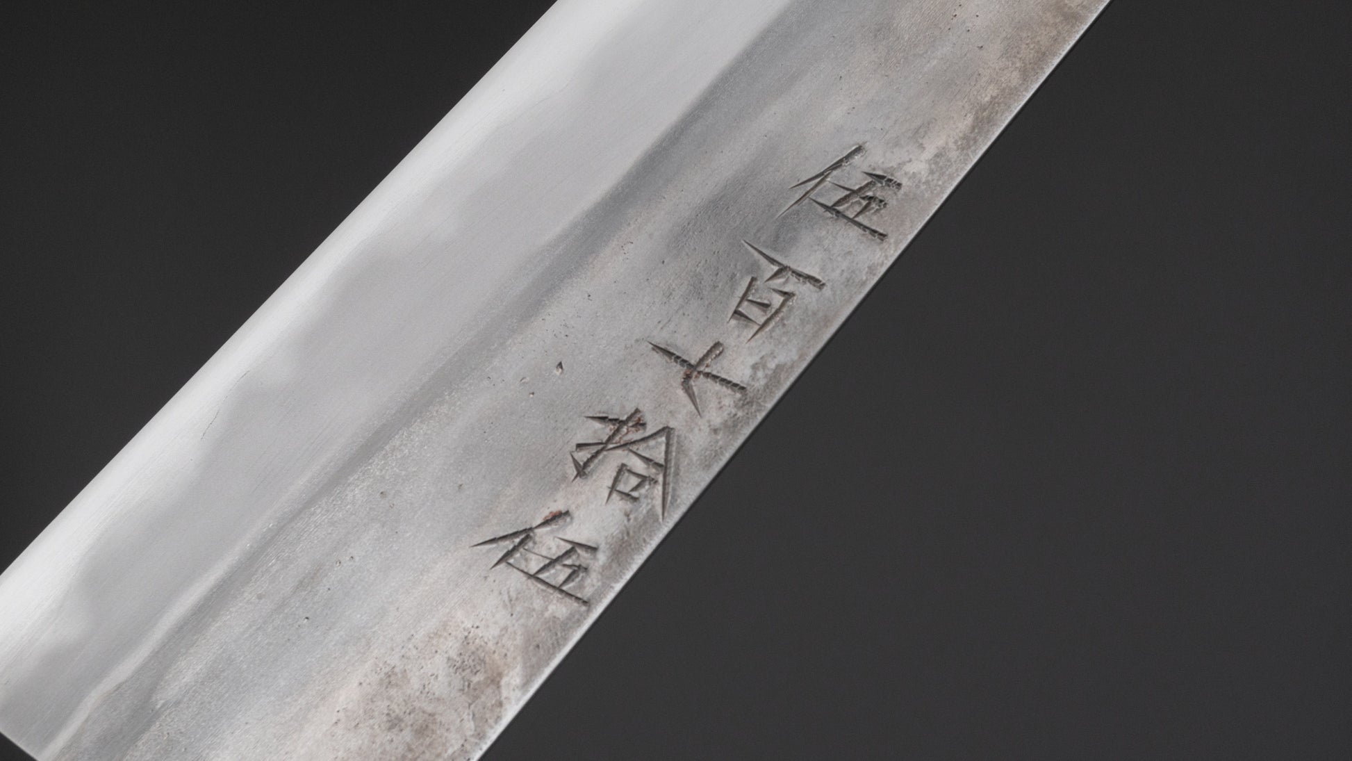 This is a carbon steel knife. That means this knife is made of non-stainless steel. There is no or an insufficient amount of chromium and/or nickel to protect this steel against oxidation. Steel such as this will react to moisture and oxygen. That on itself is not a bad thing, you might even argue it’s a great thing. The knife will form a wonderful patina, it will sharpen easily and the edge life will not disappoint.