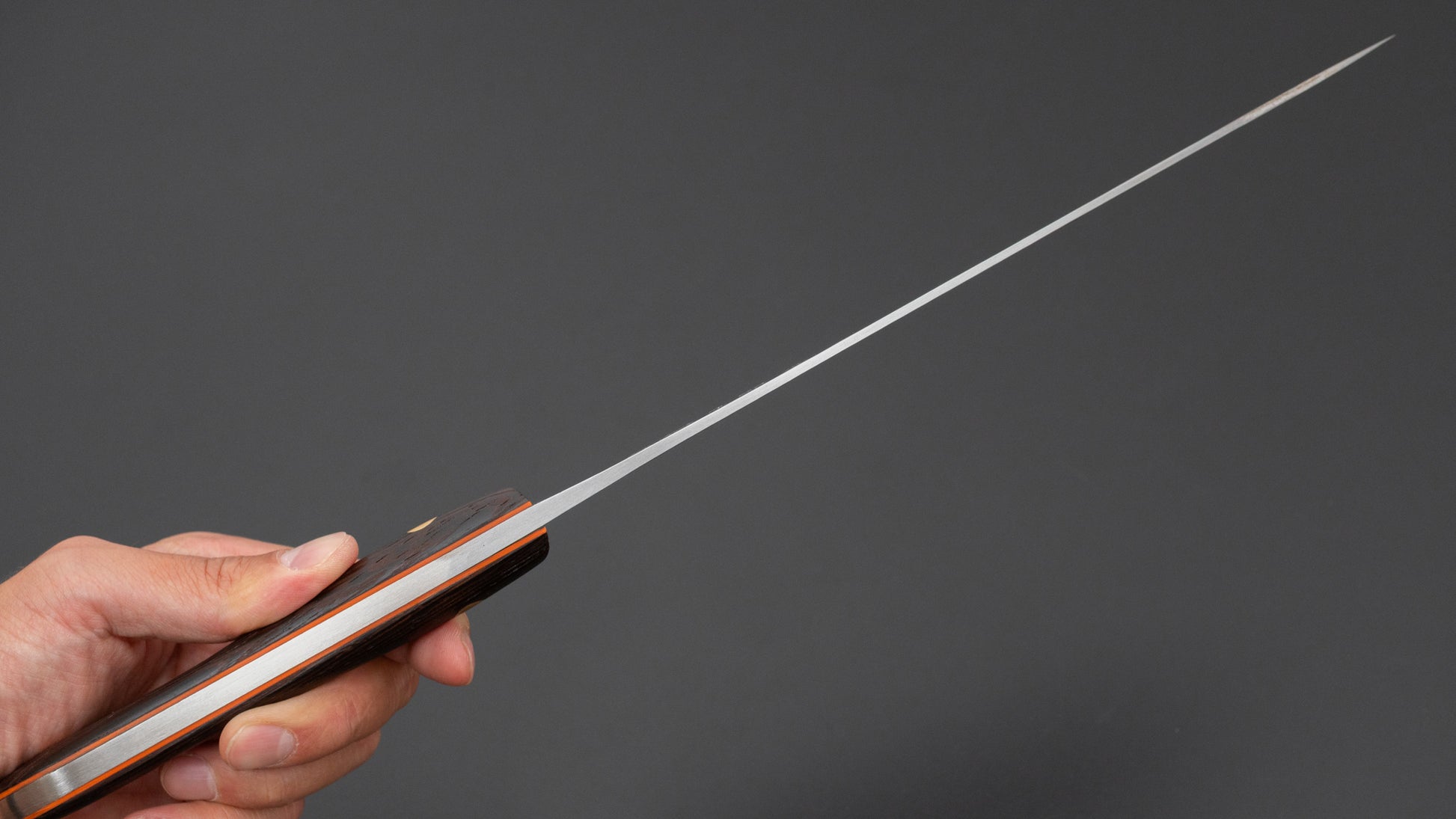 Each blade is meticulously polished and sharpened by Jiro-san using his favorite combination of synthetic and natural whetstones. The result is a perfectly even, finely polished bevel, not only beautiful but also contributing to the exceptional performance of these knives, the highest-performing we’ve ever encountered.