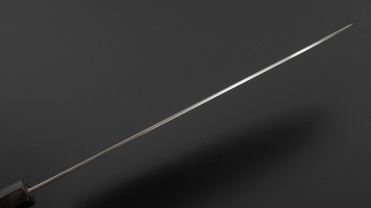 Kyuzo is a sharpener from Sakai. Son of one of the busiest sharpeners in this region and student of one of the most legendary and influential sharpeners. His style is a combination of these two teachings and is most known for this wide-bevel sharpening with a crisp and visible shinogi line. An extremely challenging way of grinding where symmetry is the most important factor. Kyuzo’s blades are characterized by their exceptional cutting performance and easy to maintain bevels. These pronounced wide bevels are easy to follow when thinning the blade resulting in better performance over time. In addition to the high level grind and sharpening these knives feature comfortably chamfered spine and choil increasing the overall quality of the blade.