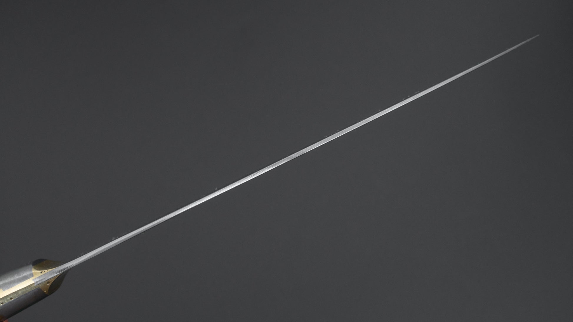 This is a carbon steel knife. Carbon steel is a non-stainless steel that lacks sufficient chromium and/or nickel to protect it from oxidation. As a result, it reacts to moisture and oxygen. While this may sound like a downside, it’s actually a key feature. Carbon steel forms a unique patina over time, is easy to sharpen, and offers excellent edge retention.