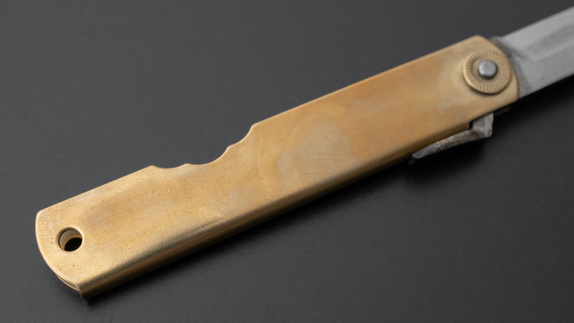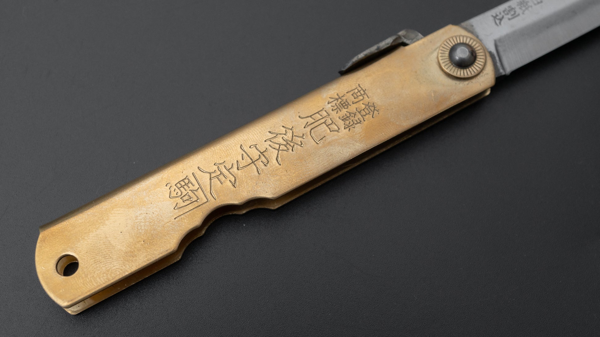 Higonokami White Steel Sakimaru Folding Knife Large Brass Handle