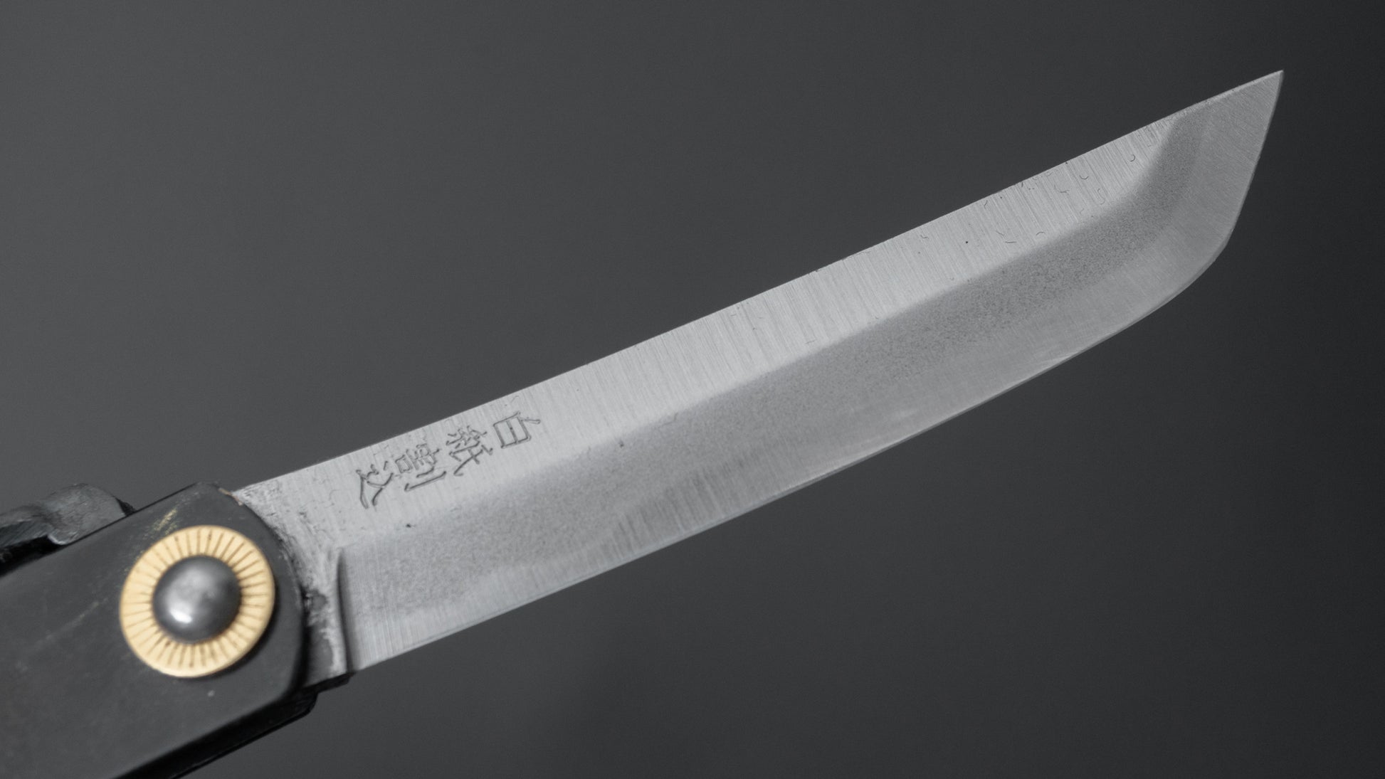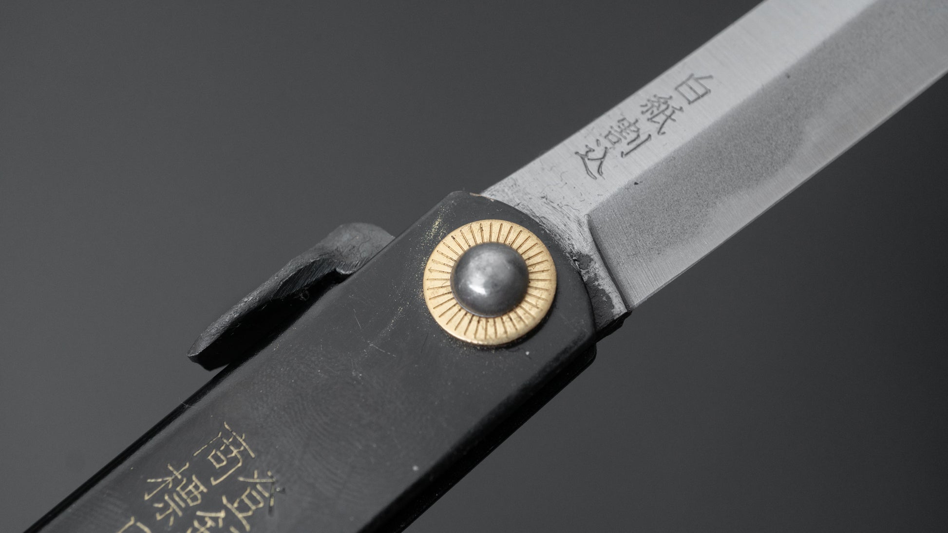 Higonokami White Steel Sakimaru Folding Knife Large Brass Handle (Black)