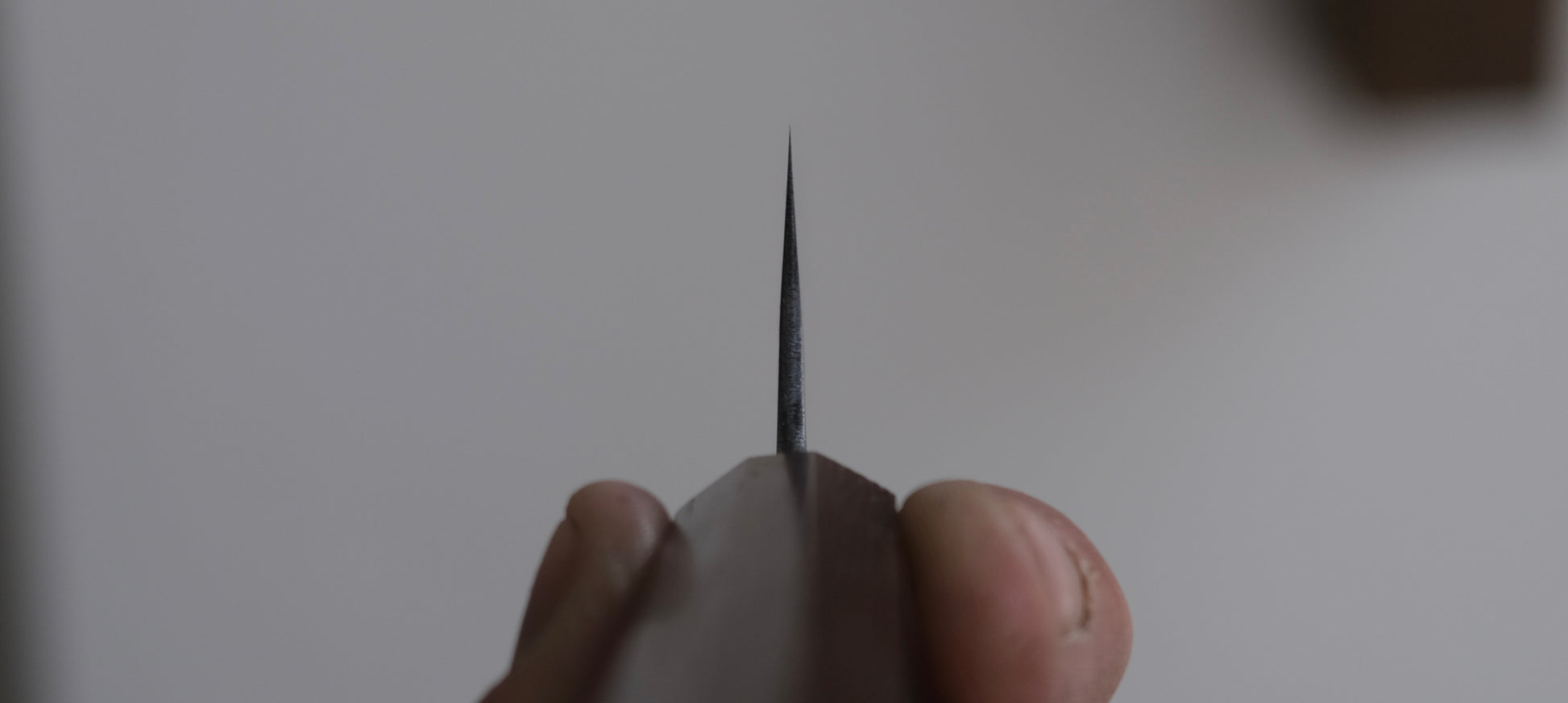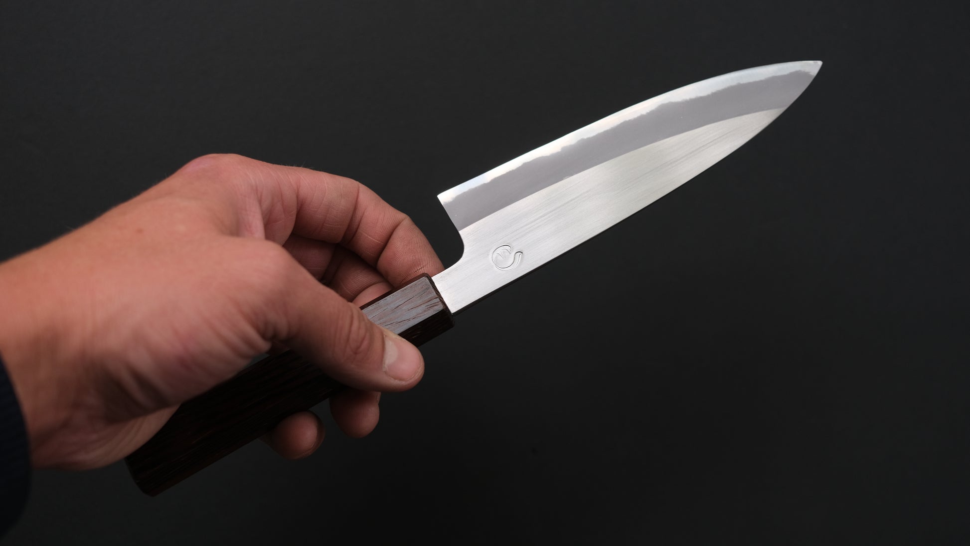 The Hitohira Hinode and Ajikataya series are forged by Sanjo based blacksmith Mutsumi Hinoura. He is the 4th generation blacksmith in the Hinoura family and trained under his father, the highly esteemed master blacksmith Tsukasa Hinoura. He runs a beautifully clean and organized workshop. The blades feature a tsuchime, nashiji or smooth kurouchi finish as is characteristic for Sanjo style knives. His kurouchi is very long lasting and greatly reduces oxidation on the carbon steel blades. The spine is somewhat thick, but tapers down to a very thin tip and similarly towards the edge.