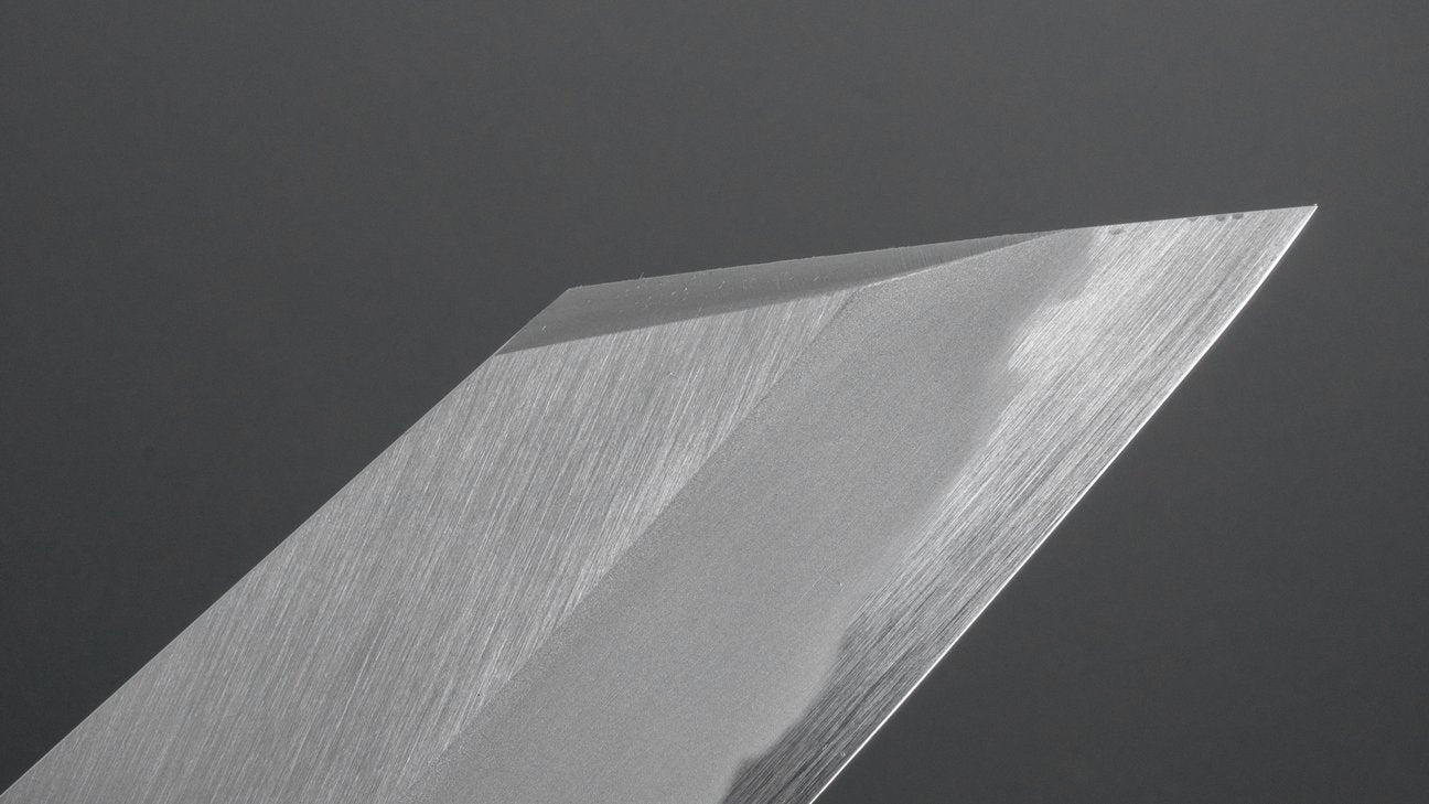 Kyuzo is een slijper uit Sakai. Zoon van een van de drukste slijpers in deze regio en leerling van een van de meest legendarische en invloedrijke slijpers. Zijn stijl is een combinatie van deze twee leringen en staat het meest bekend om zijn brede schuine slijping met een scherpe en zichtbare shinogi-lijn. Een extreem uitdagende manier van slijpen waarbij symmetrie de belangrijkste factor is. De messen van Kyuzo worden gekenmerkt door hun uitzonderlijke snijprestaties en gemakkelijk te onderhouden schuine randen. Deze uitgesproken brede schuine randen zijn gemakkelijk te volgen bij het dunner maken van het mes, wat resulteert in betere prestaties op de lange termijn. Naast het hoge niveau van slijpen en slijpen, hebben deze messen een comfortabel afgeschuinde rug en choil, wat de algehele kwaliteit van het mes verhoogt.