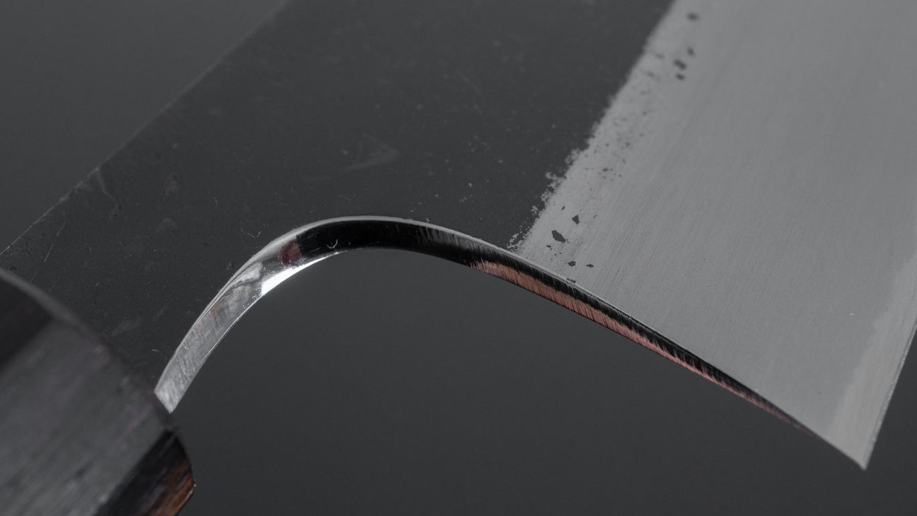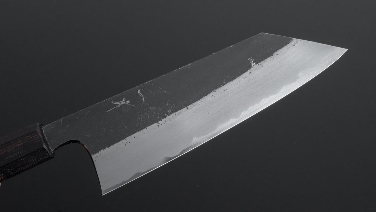 De Hitohira Togashi Kurouchi-serie is voorzien van Blue and White stalen #2-bladen. Deze worden gekenmerkt door hun rustieke kurouchi-afwerking. Dit is een natuurlijke zwarte schilfering die overblijft van het smeedproces. Wat deze serie uniek maakt, is het feit dat de smid de dikte van de rug bepaalt. Met messen die volledig gepolijst zijn, kunnen de slijpers de dikte van de rug en de tapsheid naar wens aanpassen. Hier is dit niet het geval, anders gaat de donkere afwerking verloren. Naast de esthetiek die de kurouchi toevoegt, vermindert het de oxidatie op het deel van het blad. Hoewel deze messen er rustieker uitzien en aanvoelen, zijn de prestaties ongelooflijk. De brede en fijn gepolijste schuine randen zorgen voor een soepel snijgevoel.