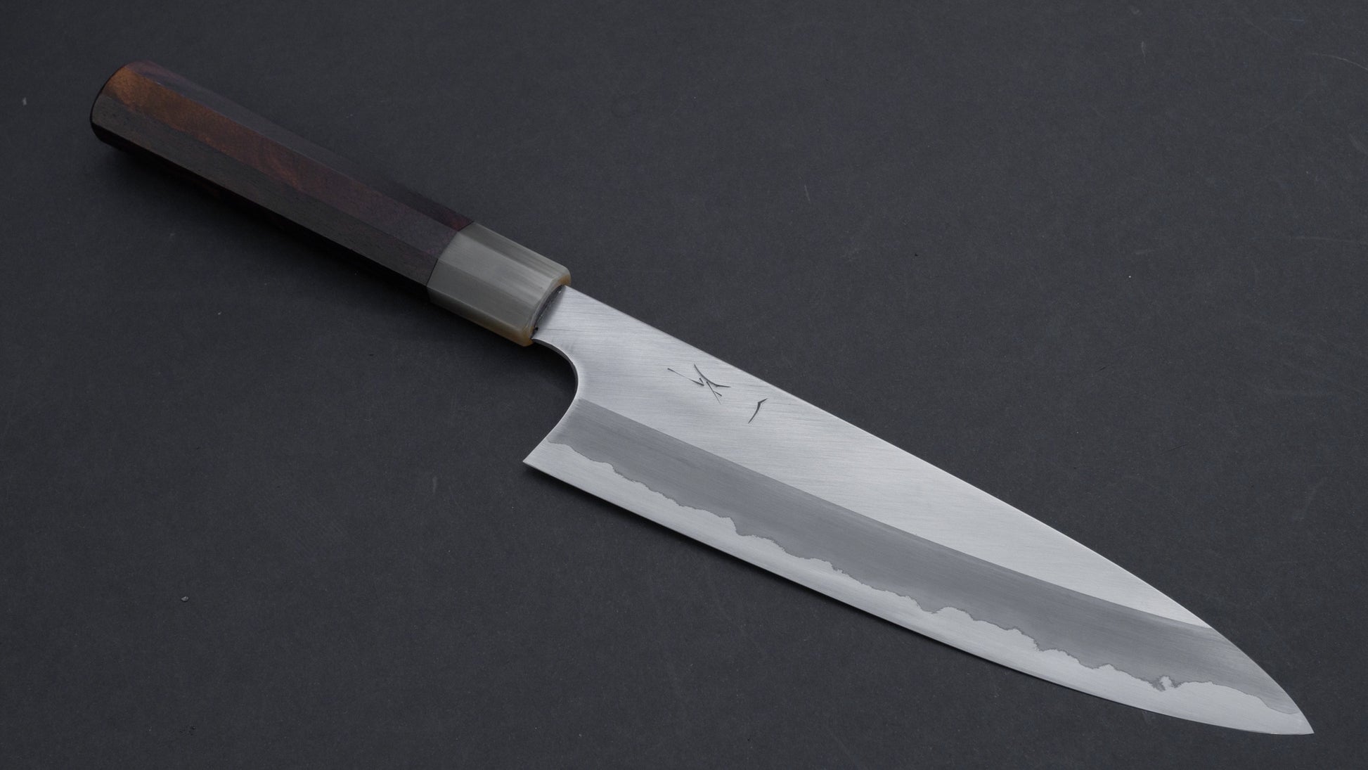 The gyuto is a true all-rounder and suitable for a wide variety of cutting tasks. A go-to knife for many and an ideal shape to start out with. Based on the Western style chef’s knife, the gyuto has a decent length, enough height to clear the knuckles from the cutting board and a somewhat narrow tip. It’s just as good at chopping an onion or cabbage, as slicing a roast or portioning fish. There's no shame in owning multiple gyuto's