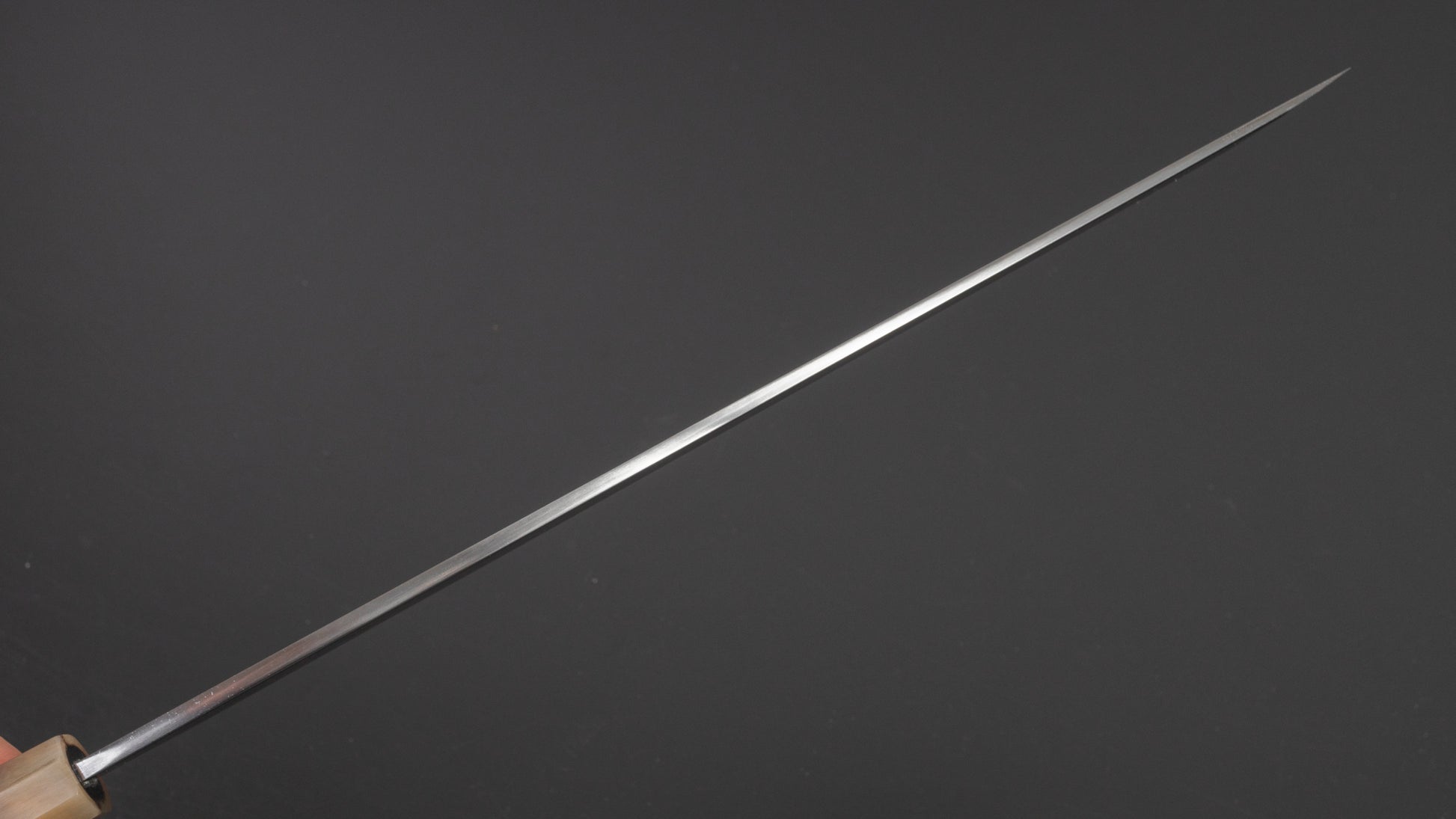 The traditional Japanese slicer. The king of knives and ofter referred to as ’Sushi knife’ it is used for slicing boneless protein. More specific and less versatile compared to the Sujihiki, the performance of the properly sharpened Yanagiba will yield much higher quality results due to their geometry and sharpness. Characteristics in steel are pronounced in single bevel knives and different sharpeners make for much variety.