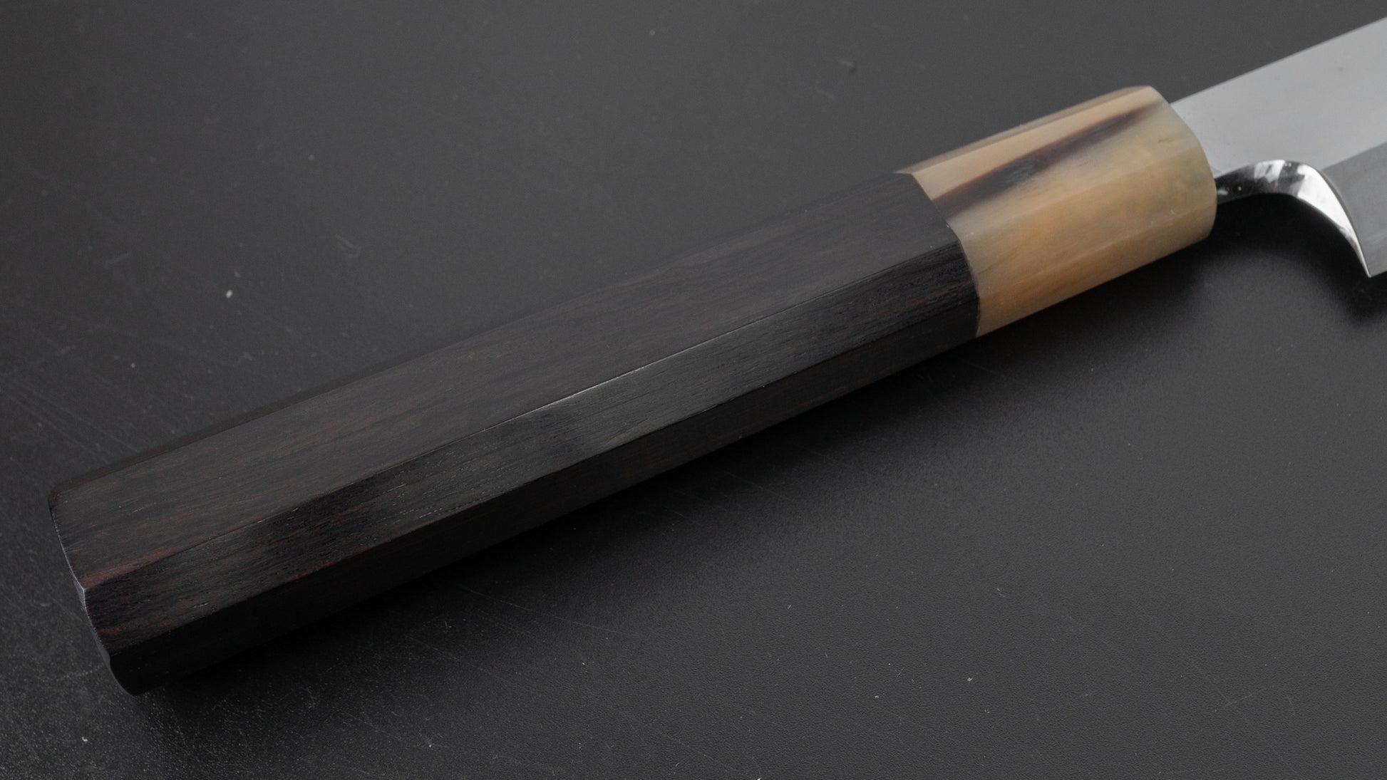 Handvat: achthoekige ebbenhouten en buffelhoornhuls