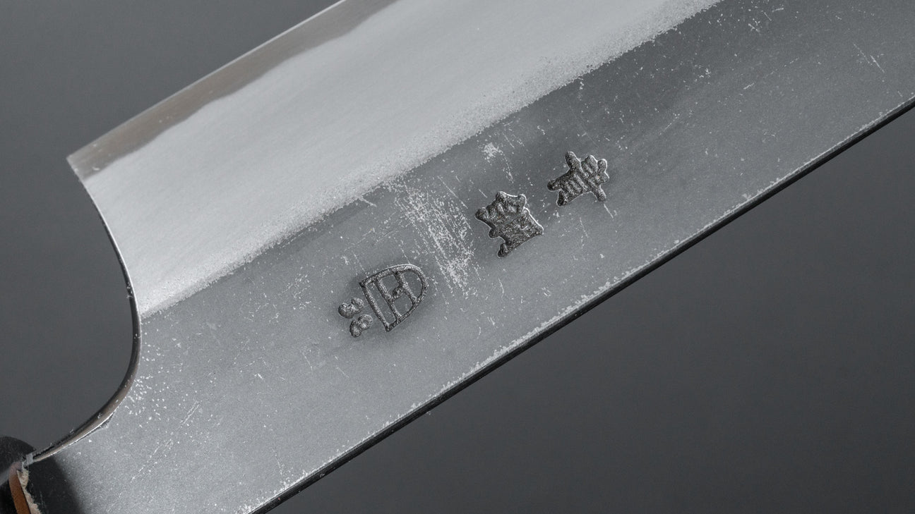 Meester Kenji Togashi is een van de meest gevierde en onderscheidende smid van Sakai. Niet alleen een "Dentokogeshi" (gecertificeerd traditioneel ambachtsman), maar ook onderscheiden met een medaille van de keizer voor zijn prestaties en dienst. Een van de, zo niet de, meest eervolle en prestigieuze onderscheidingen in Japan. Het ontvangen van zo'n prestigieuze titel is een bewijs van enorme kennis en vaardigheid. Hij is een van de weinige overgebleven smids in Japan met de vaardigheden om watergeharde Honyaki-messen te smeden. Een echte meester in traditionele technieken. Togashi-messen worden gekenmerkt door hun duurzaamheid en hardheid, terwijl ze toch gemakkelijk te slijpen zijn. Niet alleen de kwaliteit van het staal, maar ook hun interne slijping is prijzenswaardig. Verantwoordelijk voor de interne slijping is Kenya Togashi, de derde zoon van Togashi San, en van hem zien we enkele van de meest ware en consistente enkel- en dubbel-schuin slijpingen die we zijn tegengekomen. Al hun messen voelen echt alsof ze zijn gemaakt met de bedoeling om jarenlang mee te gaan.