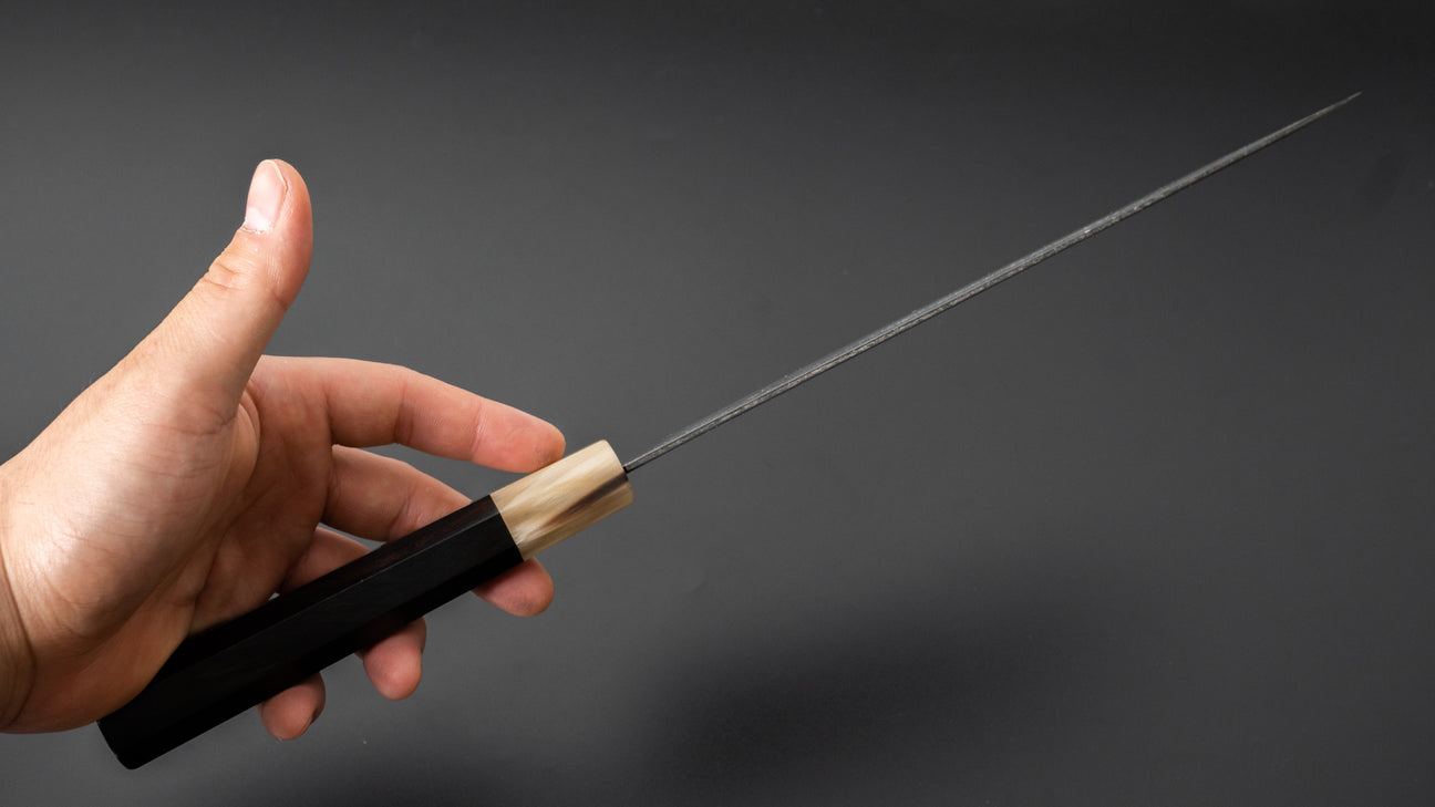 Hitohira Togashi Wit #1 Damascus Kurouchi Gyuto 240 mm ebbenhouten handvat