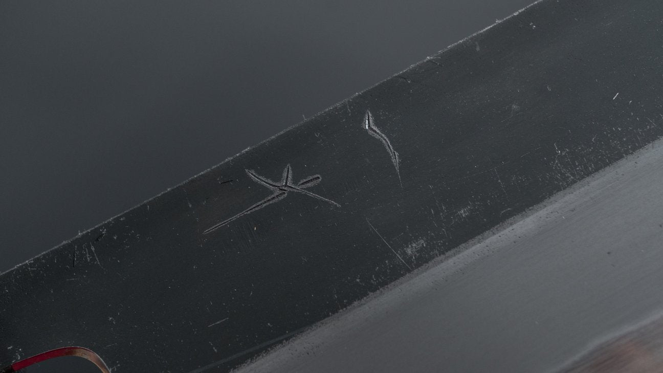 Meester Kenji Togashi is een van de meest gevierde en onderscheidende smid van Sakai. Niet alleen een "Dentokogeshi" (gecertificeerd traditioneel ambachtsman), maar ook onderscheiden met een medaille van de keizer voor zijn prestaties en dienst. Een van de, zo niet de, meest eervolle en prestigieuze onderscheidingen in Japan. Het ontvangen van zo'n prestigieuze titel is een bewijs van enorme kennis en vaardigheid. Hij is een van de weinige overgebleven smids in Japan met de vaardigheden om watergeharde Honyaki-messen te smeden. Een echte meester in traditionele technieken. Togashi-messen worden gekenmerkt door hun duurzaamheid en hardheid, terwijl ze toch gemakkelijk te slijpen zijn. Niet alleen de kwaliteit van het staal, maar ook hun interne slijping is prijzenswaardig. Verantwoordelijk voor de interne slijping is Kenya Togashi, de derde zoon van Togashi San, en van hem zien we enkele van de meest ware en consistente enkel- en dubbel-schuin slijpingen die we zijn tegengekomen. Al hun messen voelen echt alsof ze zijn gemaakt met de bedoeling om jarenlang mee te gaan.