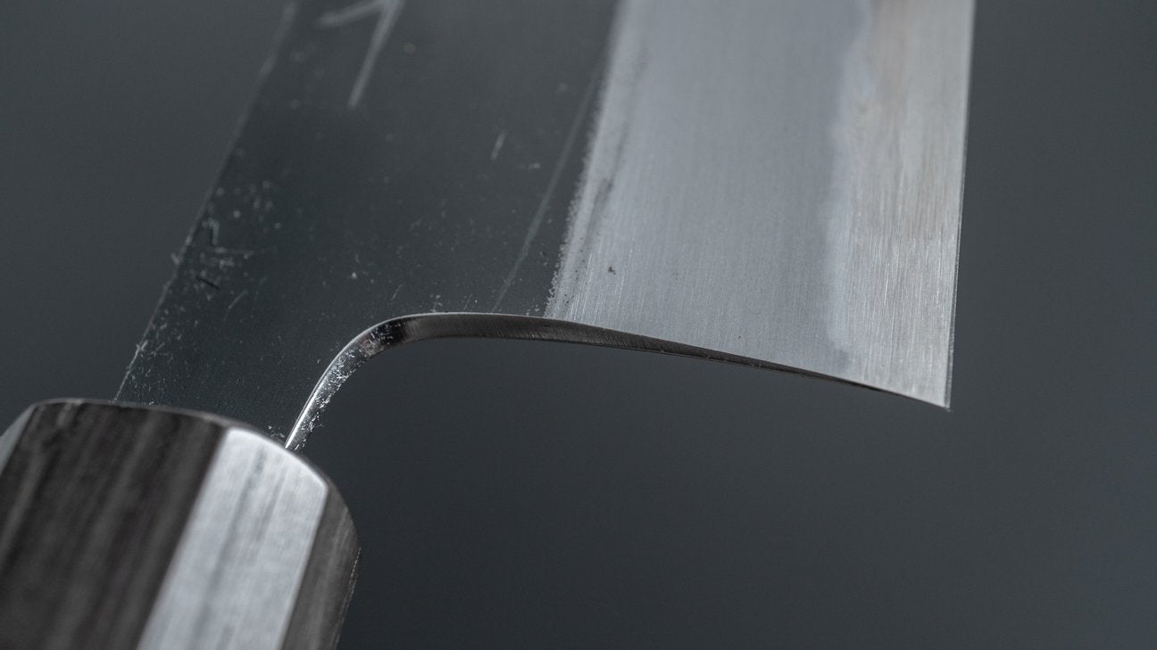 De Hitohira Togashi Kurouchi-serie is voorzien van Blue and White stalen #2-bladen. Deze worden gekenmerkt door hun rustieke kurouchi-afwerking. Dit is een natuurlijke zwarte schilfering die overblijft van het smeedproces. Wat deze serie uniek maakt, is het feit dat de smid de dikte van de rug bepaalt. Met messen die volledig gepolijst zijn, kunnen de slijpers de dikte van de rug en de tapsheid naar wens aanpassen. Hier is dit niet het geval, anders gaat de donkere afwerking verloren. Naast de esthetiek die de kurouchi toevoegt, vermindert het de oxidatie op het deel van het blad. Hoewel deze messen er rustieker uitzien en aanvoelen, zijn de prestaties ongelooflijk. De brede en fijn gepolijste schuine randen zorgen voor een soepel snijgevoel.