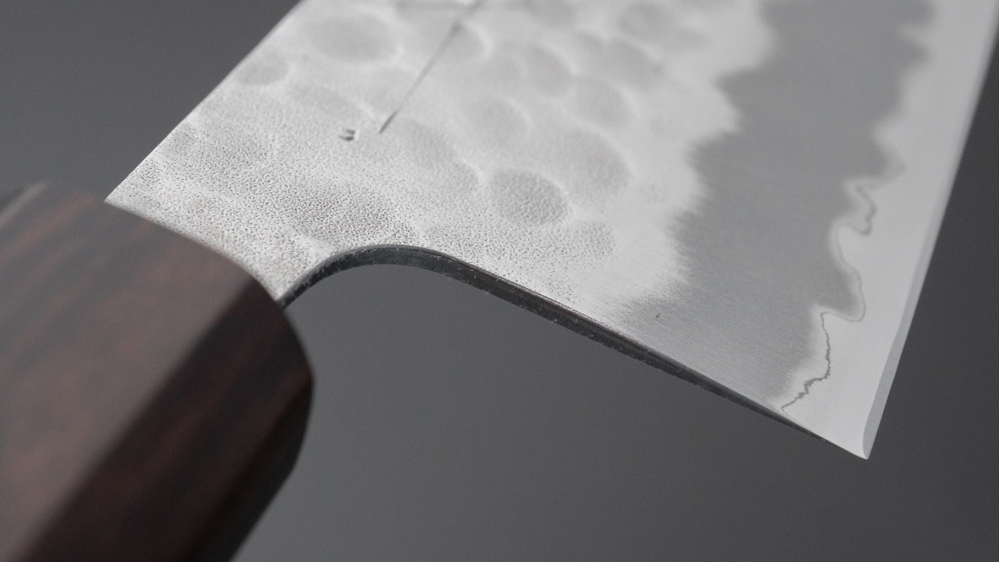 Dit is een mes van koolstofstaal met een zachte roestvrijstalen bekleding. Veel Japanse messen zijn gemaakt met een 3-laags ontwerp dat bekend staat als "San Mai", waarbij een harde, hoogwaardige stalen kern tussen twee lagen zachter staal is geklemd. In dit geval is de kern gemaakt van koolstofstaal, terwijl de buitenste lagen, of bekleding, zijn samengesteld uit roestvrij staal. Deze constructie combineert de voordelen van een koolstofstalen rand, zoals eenvoudig slijpen en uitstekende randbehoud, met de extra corrosiebestendigheid van roestvrij staal voor de rest van het lemmet.