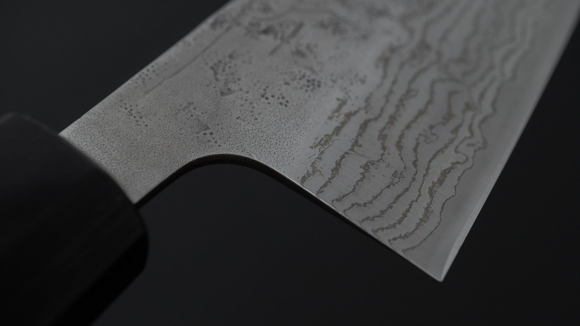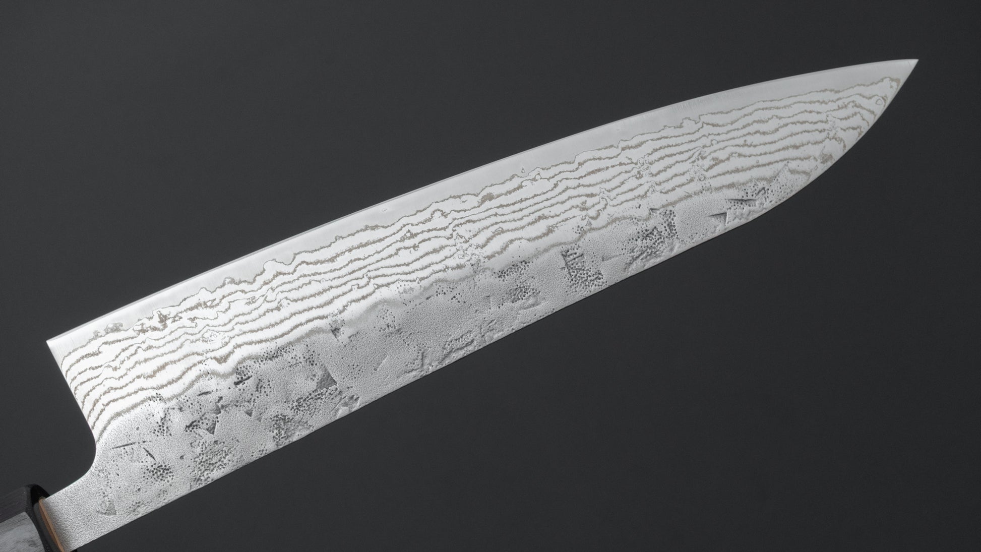 The gyuto is a true all-rounder and suitable for a wide variety of cutting tasks. A go-to knife for many and an ideal shape to start out with. Based on the Western style chef’s knife, the gyuto has a decent length, enough height to clear the knuckles from the cutting board and a somewhat narrow tip. It’s just as good at chopping an onion or cabbage, as slicing a roast or portioning fish. There's no shame in owning multiple gyuto's