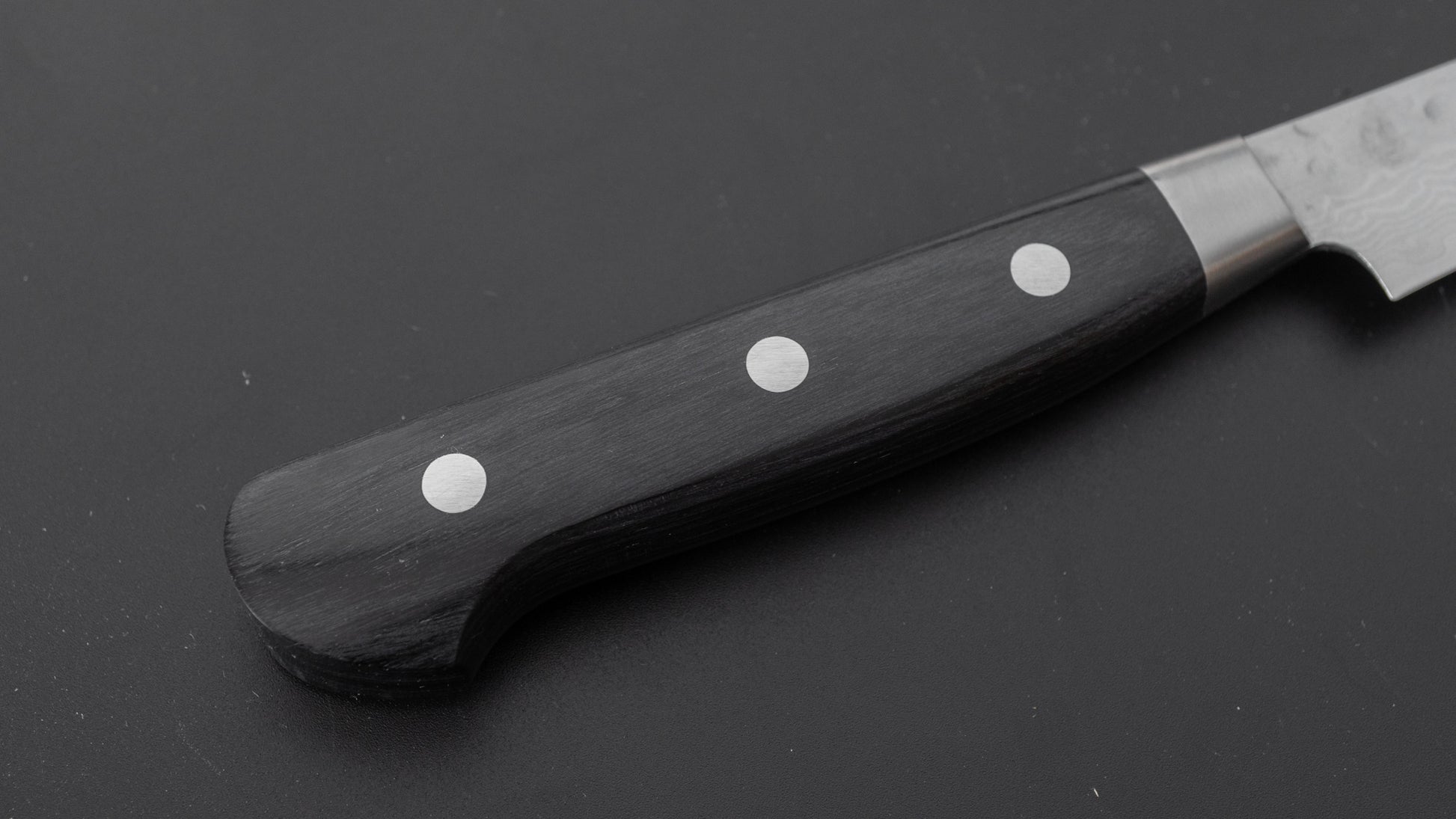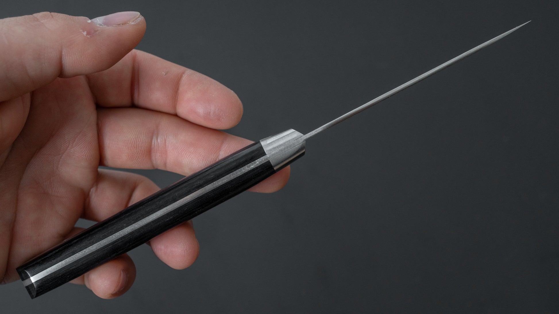 Petty knives (Utilty) have a similar profile as the Gyuto but smaller, commonly ranging from 12 to 15cm. A shape most often used next to any larger all-purpose blade (gyuto & santoku) although there are many households where this is the go-to knife. Very suitable for the smaller cutting tasks such as cleaning, portioning and peeling fruits and vegetables and cleaning smaller cuts of meat or fish.