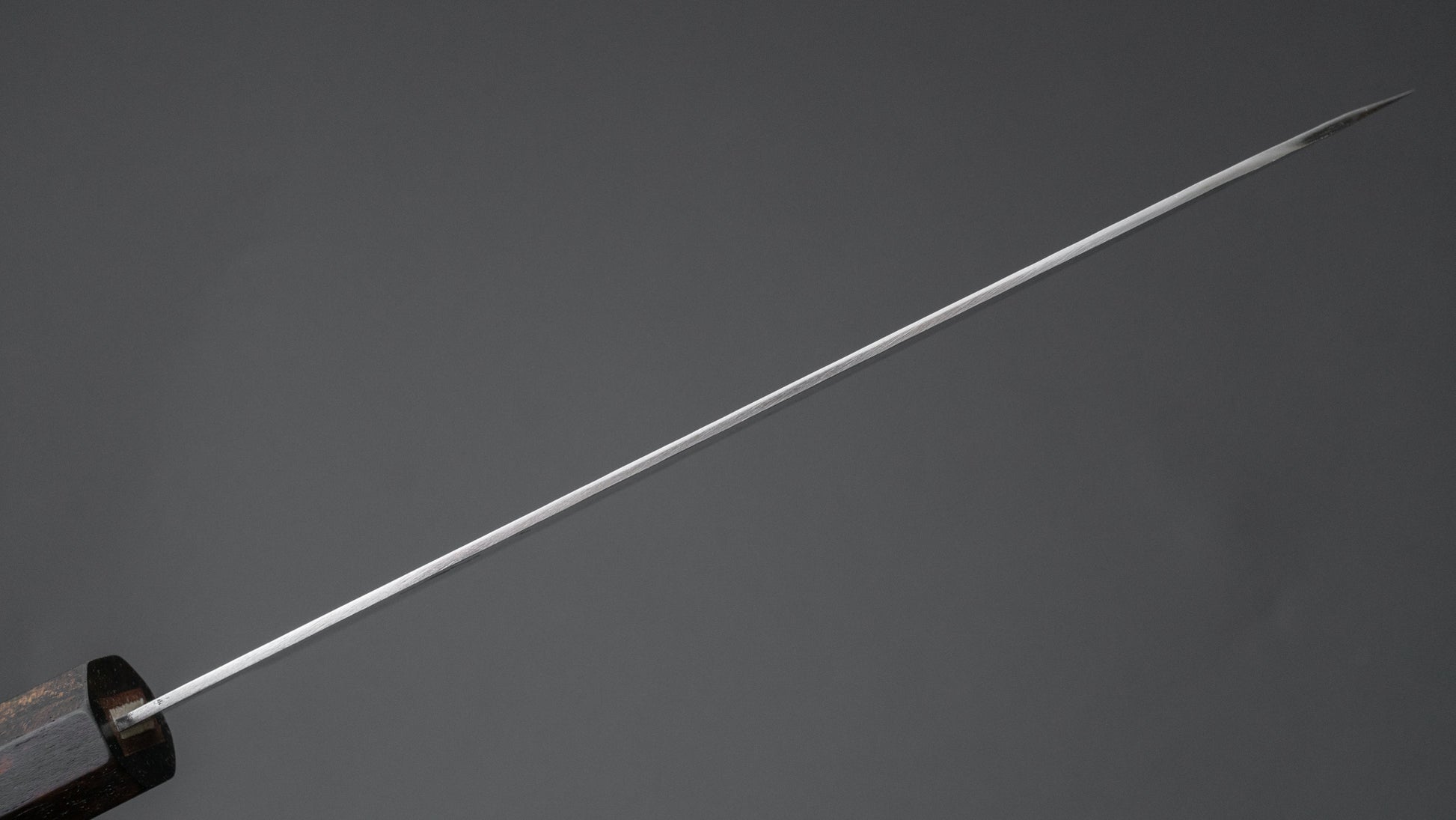 The gyuto is a true all-rounder and suitable for a wide variety of cutting tasks. A go-to knife for many and an ideal shape to start out with. Based on the Western style chef’s knife, the gyuto has a decent length, enough height to clear the knuckles from the cutting board and a somewhat narrow tip. It’s just as good at chopping an onion or cabbage, as slicing a roast or portioning fish. There's no shame in owning multiple gyuto's