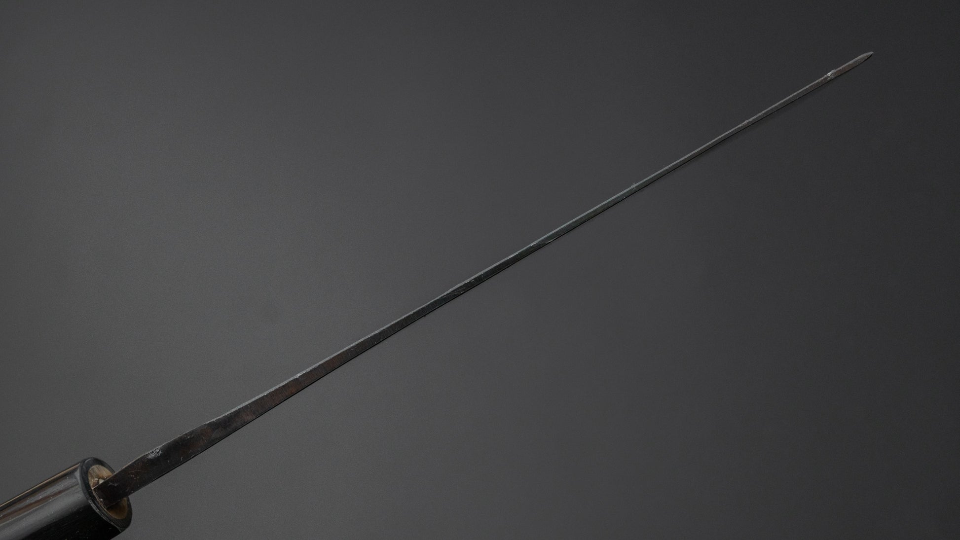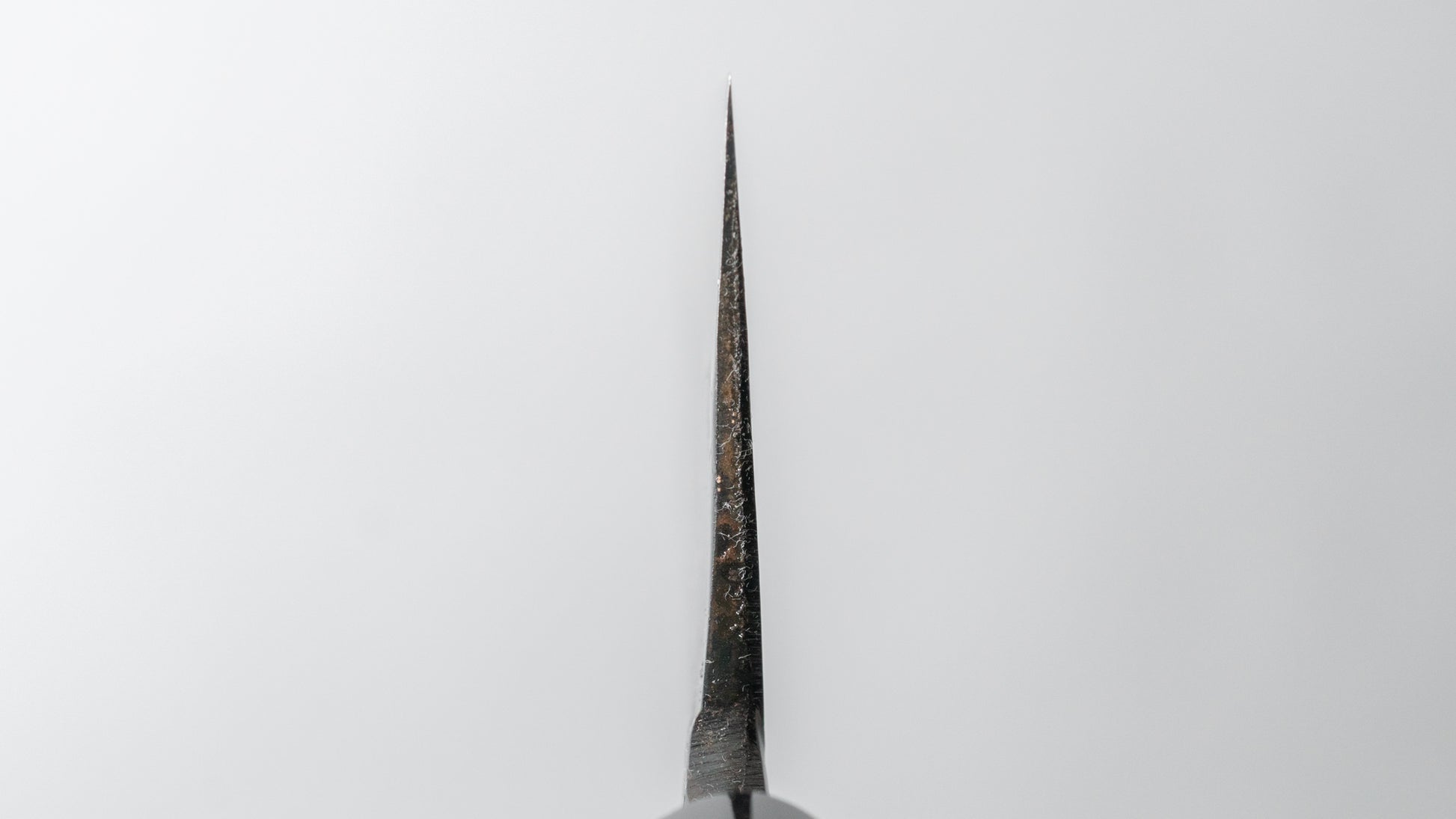 Dit is een mes van koolstofstaal. Koolstofstaal is een niet-roestvrij staal dat niet genoeg chroom en/of nikkel bevat om het te beschermen tegen oxidatie. Als gevolg daarvan reageert het op vocht en zuurstof. Hoewel dit misschien als een nadeel klinkt, is het eigenlijk een belangrijk kenmerk. Koolstofstaal vormt na verloop van tijd een unieke patina, is gemakkelijk te slijpen en biedt uitstekende randbehoud.