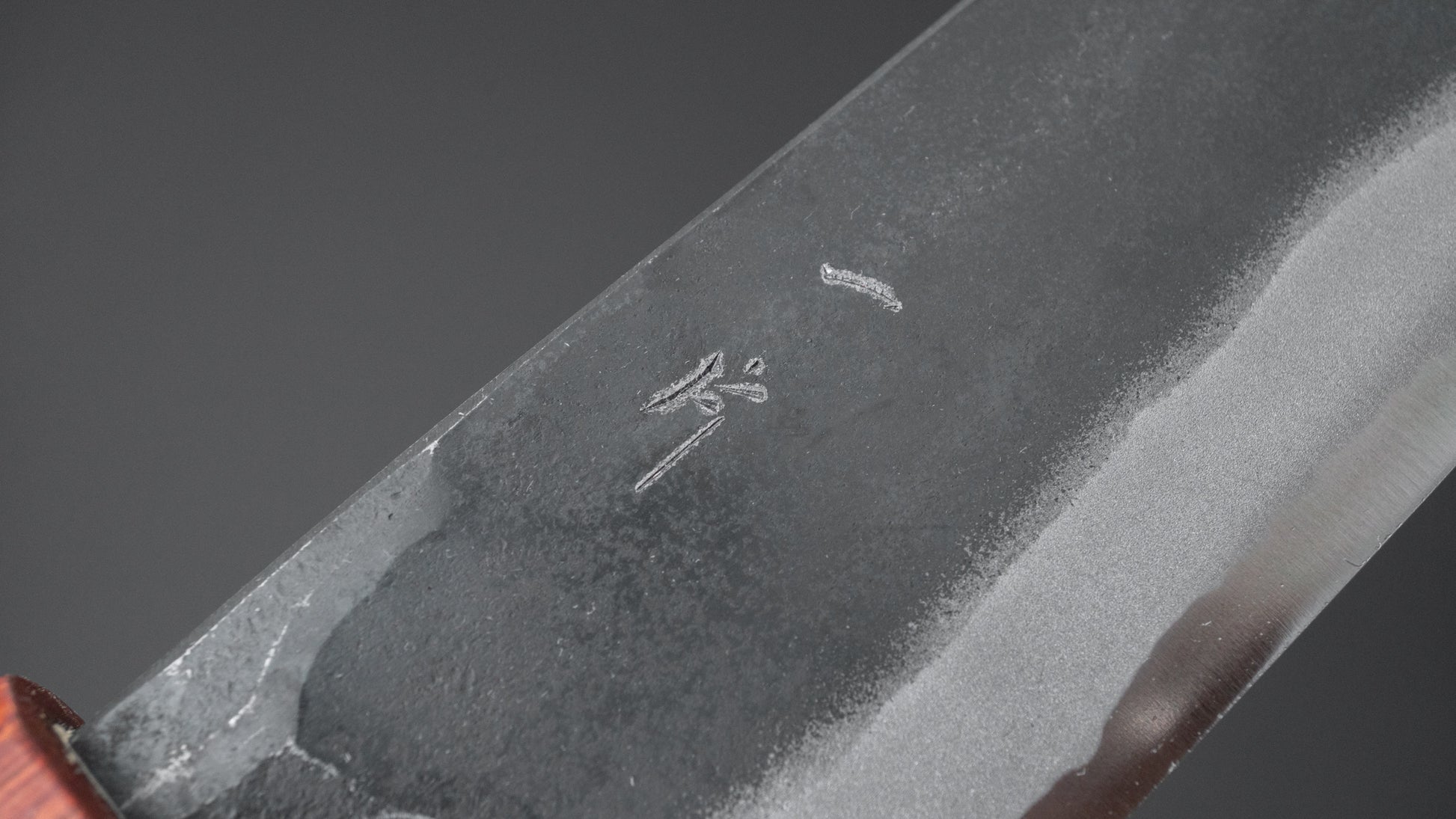 Dit is een mes van koolstofstaal. Koolstofstaal is een niet-roestvrij staal dat niet genoeg chroom en/of nikkel bevat om het te beschermen tegen oxidatie. Als gevolg daarvan reageert het op vocht en zuurstof. Hoewel dit misschien als een nadeel klinkt, is het eigenlijk een belangrijk kenmerk. Koolstofstaal vormt na verloop van tijd een unieke patina, is gemakkelijk te slijpen en biedt uitstekende randbehoud.