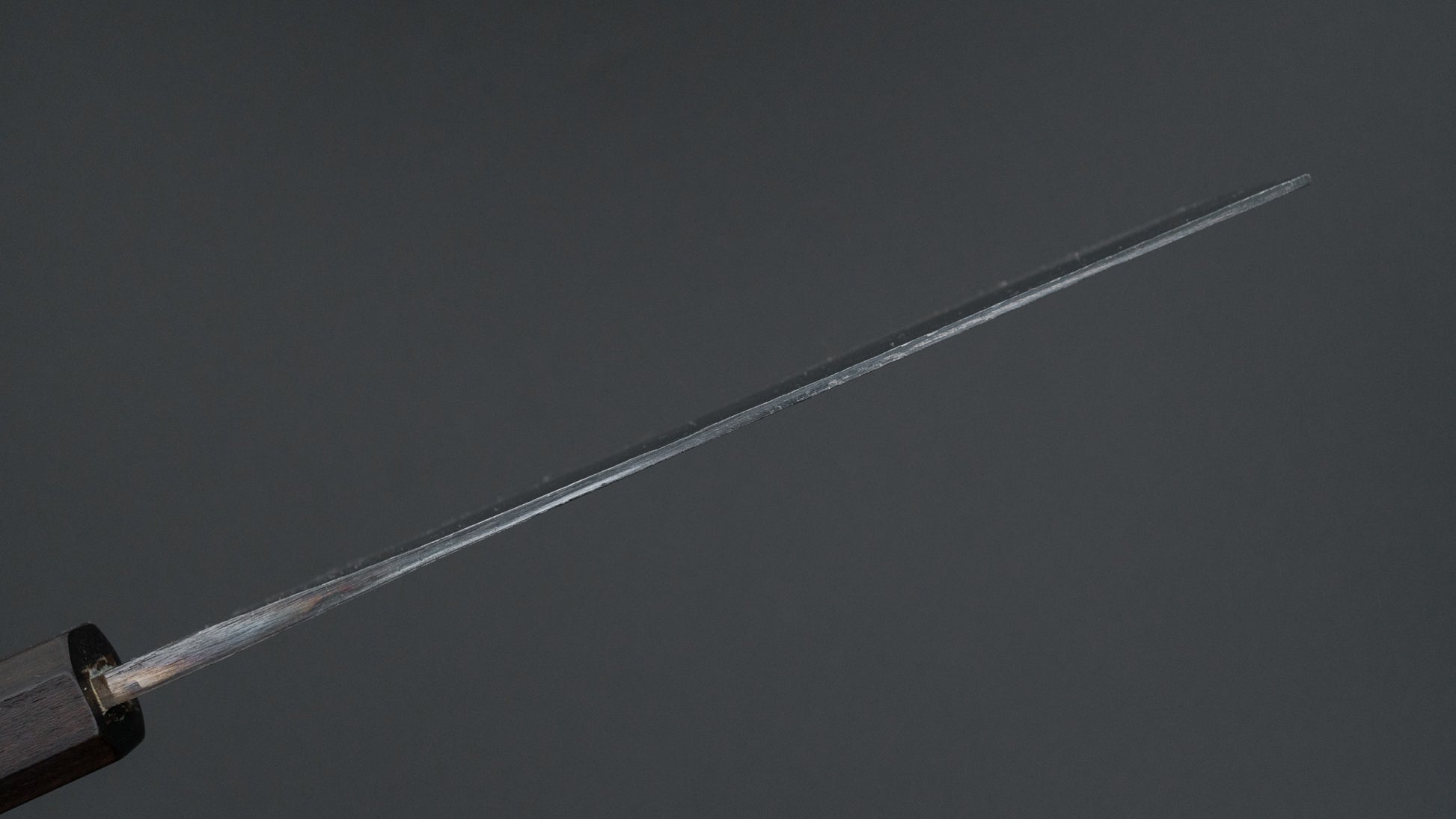 The classic vegetable knife. Highly functional for processing large amounts of vegetables and preforming finer cutting tasks such as julienne of brunoise. The absence of a pronounced belly in the profile orientates it more towards chopping style cutting motions rather than rolling cuts.