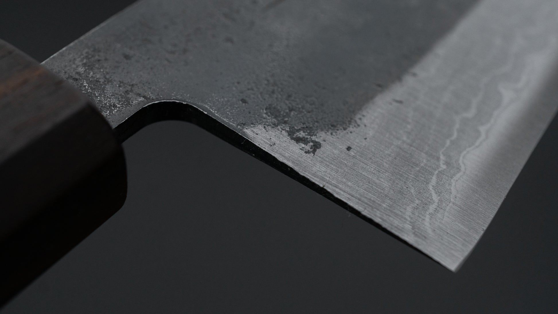 Extra: Er is geen definitief "goed of fout" tussen koolstof- en roestvrijstalen messen, maar koolstofstaal wordt vaak als superieur beschouwd voor traditionele methoden om messen te maken. Als gevolg hiervan bieden koolstofstalen messen over het algemeen een betere randbehoud, slijpvermogen en algehele prestaties vergeleken met andere in dezelfde prijsklasse.