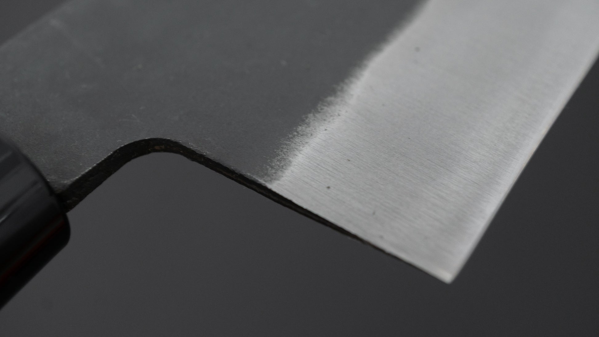 Dit is een mes van koolstofstaal. Dat betekent dat dit mes is gemaakt van niet-roestvrij staal. Er is geen of onvoldoende chroom en/of nikkel aanwezig om dit staal tegen oxidatie te beschermen. Dit soort staal reageert op vocht en zuurstof. Dat is op zichzelf geen slechte zaak, je zou zelfs kunnen zeggen dat het iets geweldigs is. Het mes zal een prachtige patina vormen, gemakkelijk slijpen en de snededuur zal niet teleurstellen.