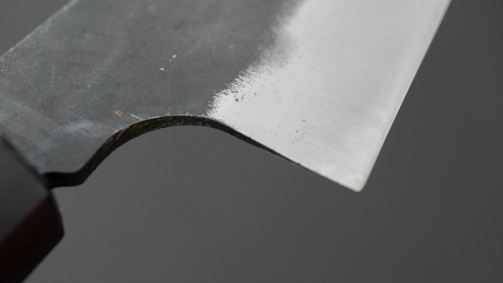 De verzorging van een koolstofstalen mes als dit is niet heel ingewikkeld en goed vergelijkbaar met ieder ander mes. Bewaar je mes altijd schoon en droog, geen vaatwasser, laat het niet aan de lucht drogen en vermijd extreem harde producten zoals diepvriesproducten of botten. Met koolstofstaal wil je je mes ook tijdens het koken laten drogen, laat het nooit te lang vochtig of nat staan. Vaak is een snelle veeg met een droge doek of handdoek meer dan voldoende. Een koolstofstalen mes kan roesten als het niet goed wordt onderhouden. Roest kan verwijderd worden maar dat willen we uiteraard vermijden.