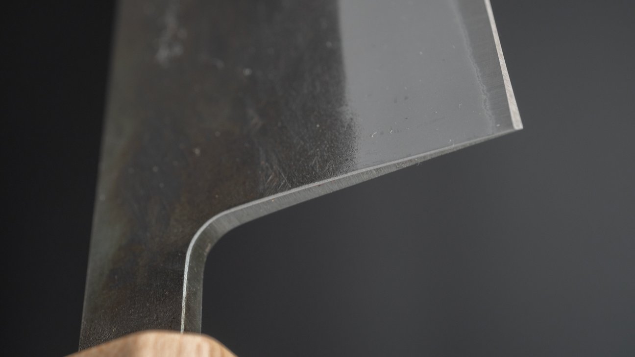 The classic vegetable knife. Highly functional for processing large amounts of vegetables and preforming finer cutting tasks such as julienne of brunoise. The absence of a pronounced belly in the profile orientates it more towards chopping style cutting motions rather than rolling cuts.
