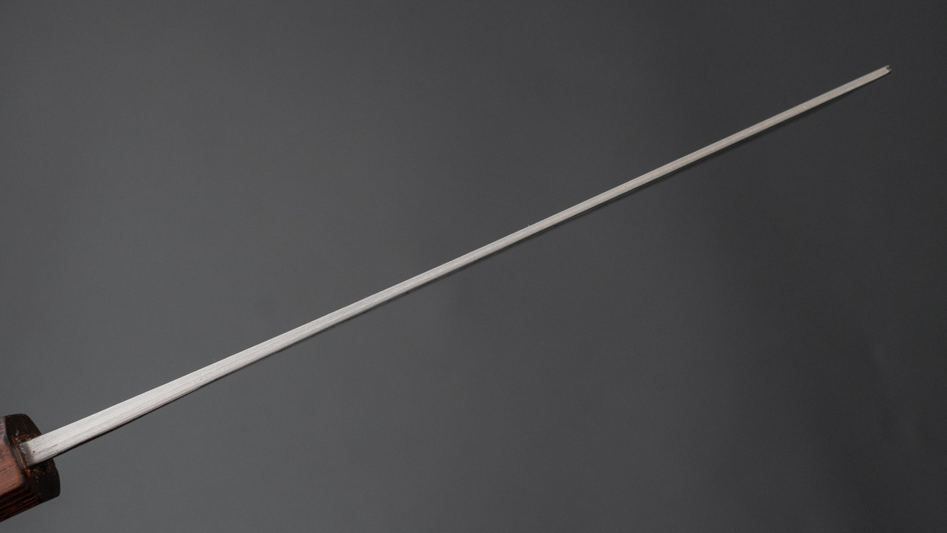The classic vegetable knife. Highly functional for processing large amounts of vegetables and preforming finer cutting tasks such as julienne of brunoise. The absence of a pronounced belly in the profile orientates it more towards chopping style cutting motions rather than rolling cuts.