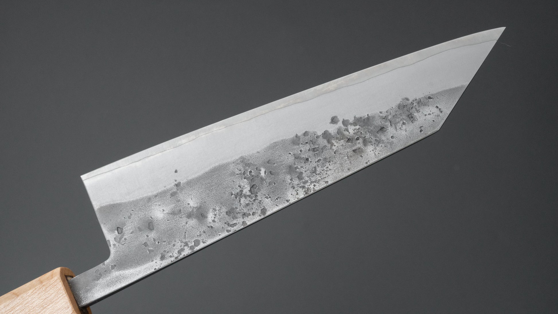 De Hitohira TD-serie bestaat uit robuuste, handgemaakte messen van Sanjo, Niigata. Alle messen in de TD-serie zijn handgesmeed, wat zorgt voor een merkbare verbetering in staalkwaliteit. Zeer aantrekkelijke prijzen voor handgesmede messen. Ze zijn verkrijgbaar met een kurouchi-, tsuchime-, nashiji- en soms migaki-afwerking, afgewerkt met een roestvrijstalen bekleding op Blue #2- of SLD-kernstaal. Zoals veel messen van Sanjo hebben ze een rug die iets dikker is richting de nek, wat zorgt voor een goede grip en een iets hoger gewicht. Zeer goed gemaakte en betrouwbare messen.