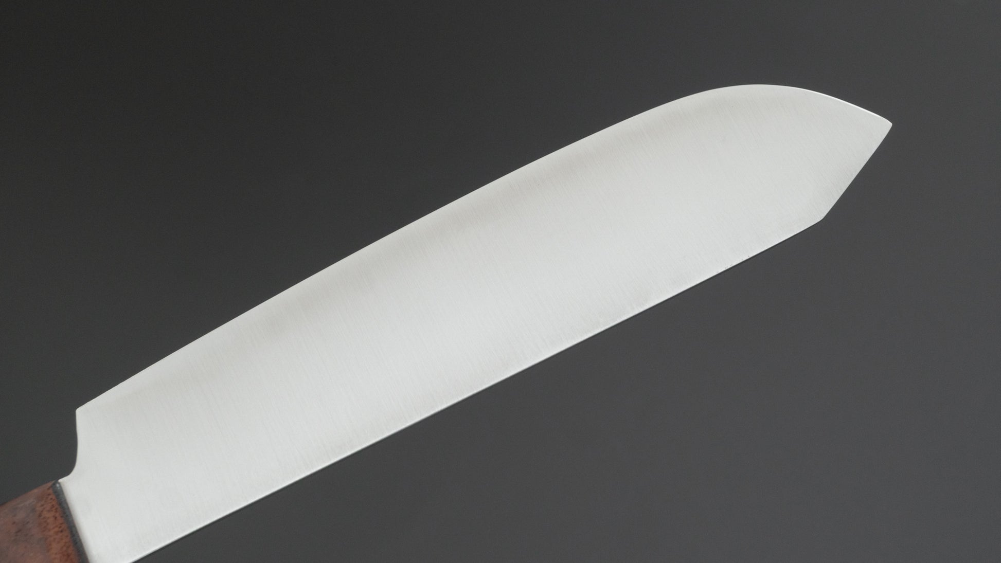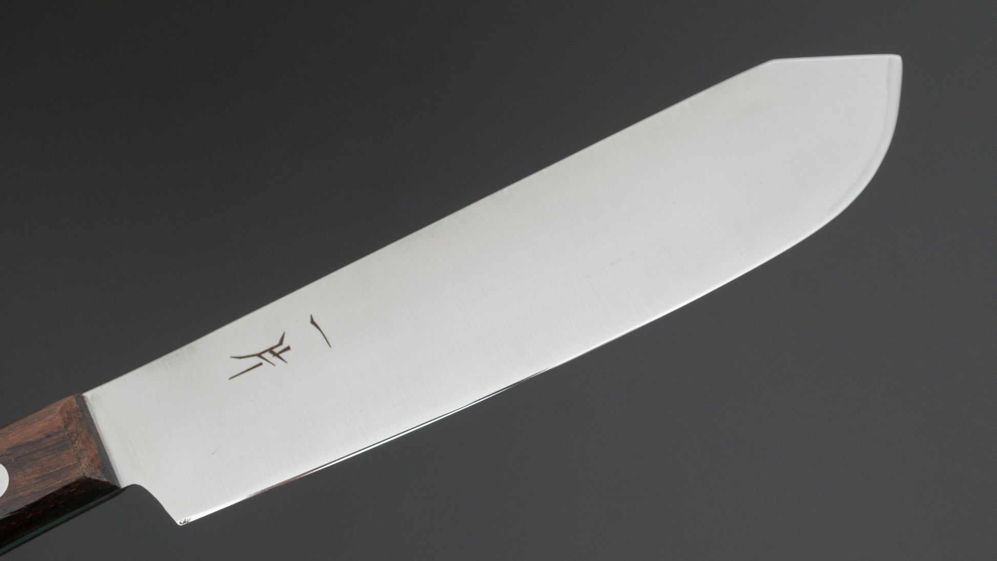 Dit is een mes van koolstofstaal. Dat betekent dat dit mes is gemaakt van niet-roestvrij staal. Er is geen of onvoldoende chroom en/of nikkel aanwezig om dit staal tegen oxidatie te beschermen. Dit soort staal reageert op vocht en zuurstof. Dat is op zichzelf geen slechte zaak, je zou zelfs kunnen zeggen dat het iets geweldigs is. Het mes zal een prachtige patina vormen, gemakkelijk slijpen en de snededuur zal niet teleurstellen.