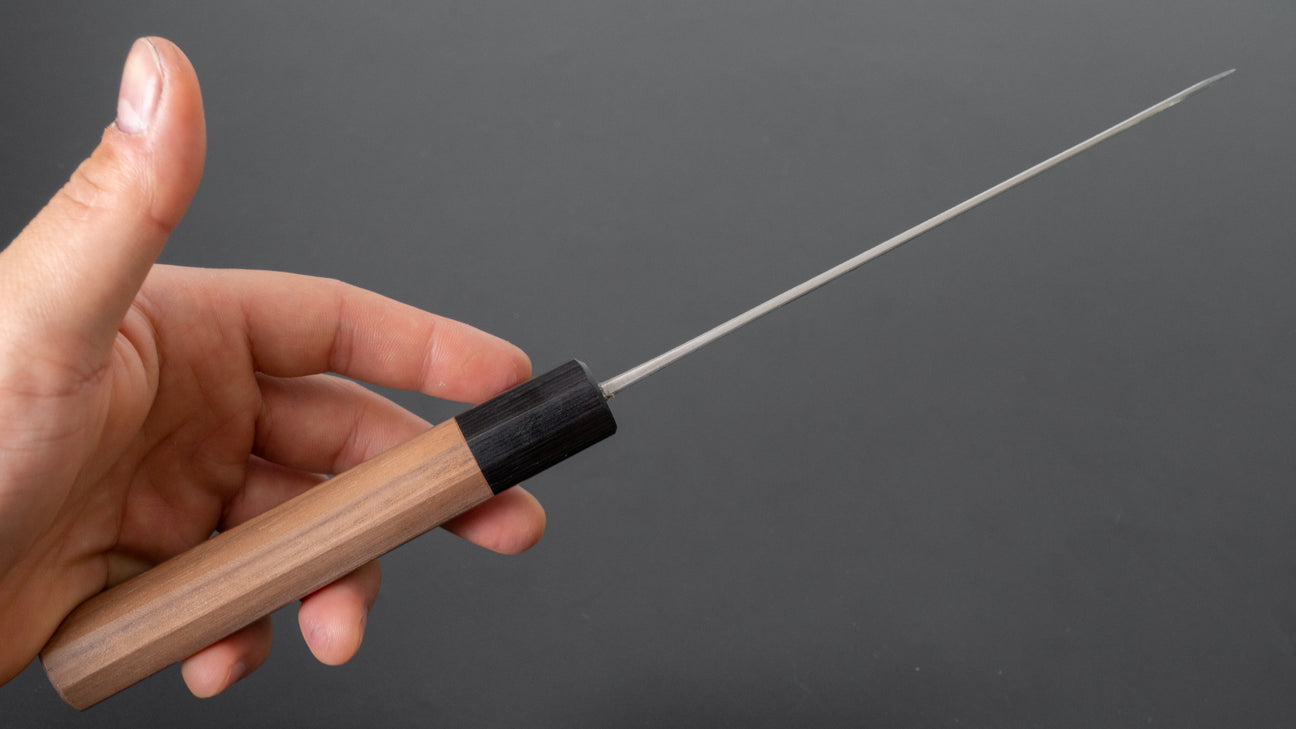 An equally all-round knife as the Gyuto but more orientated to homestyle cooking. Incredibly versatile on its own, easy to use, nimble and suitable for a wide variety of cutting tasks. The Bunka is a version of the santoku but with a Kiritsuke tip. This style tip will excel in more delicate work while it still retains the all-purpose functionality of the santoku.