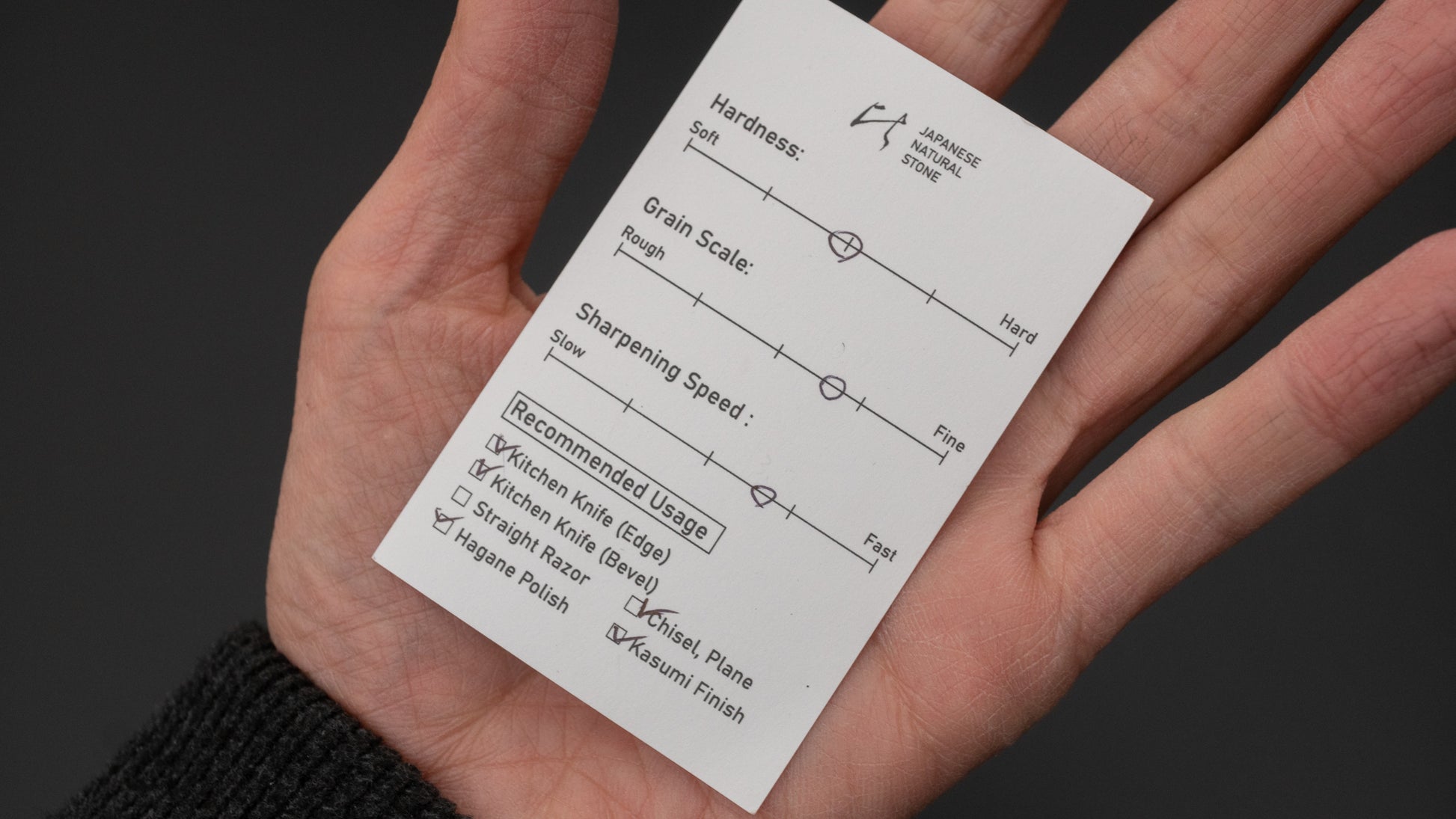 Aanbevolen gebruik: Keukenmes (rand), Keukenmes (schuin), Beitel, Schaaf, Hagane Polish, Kasumi Finish
