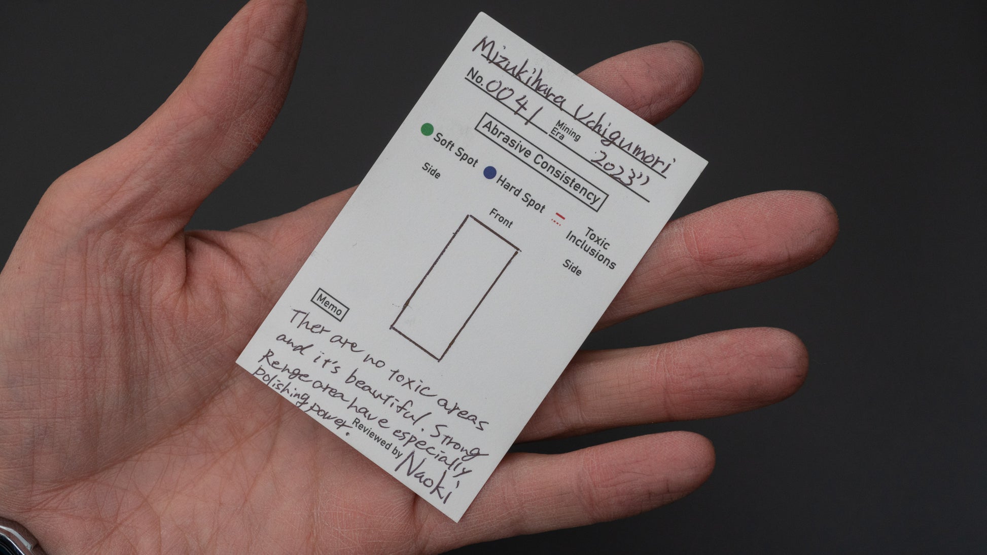 Een unieke Uchigumori. Perfecte maat en specificaties. Dit is een steen die ongeveer 60 jaar geleden is gewonnen. Sterke renge met een bijzonder goede polijstkracht. Zeer gebruiksvriendelijk.