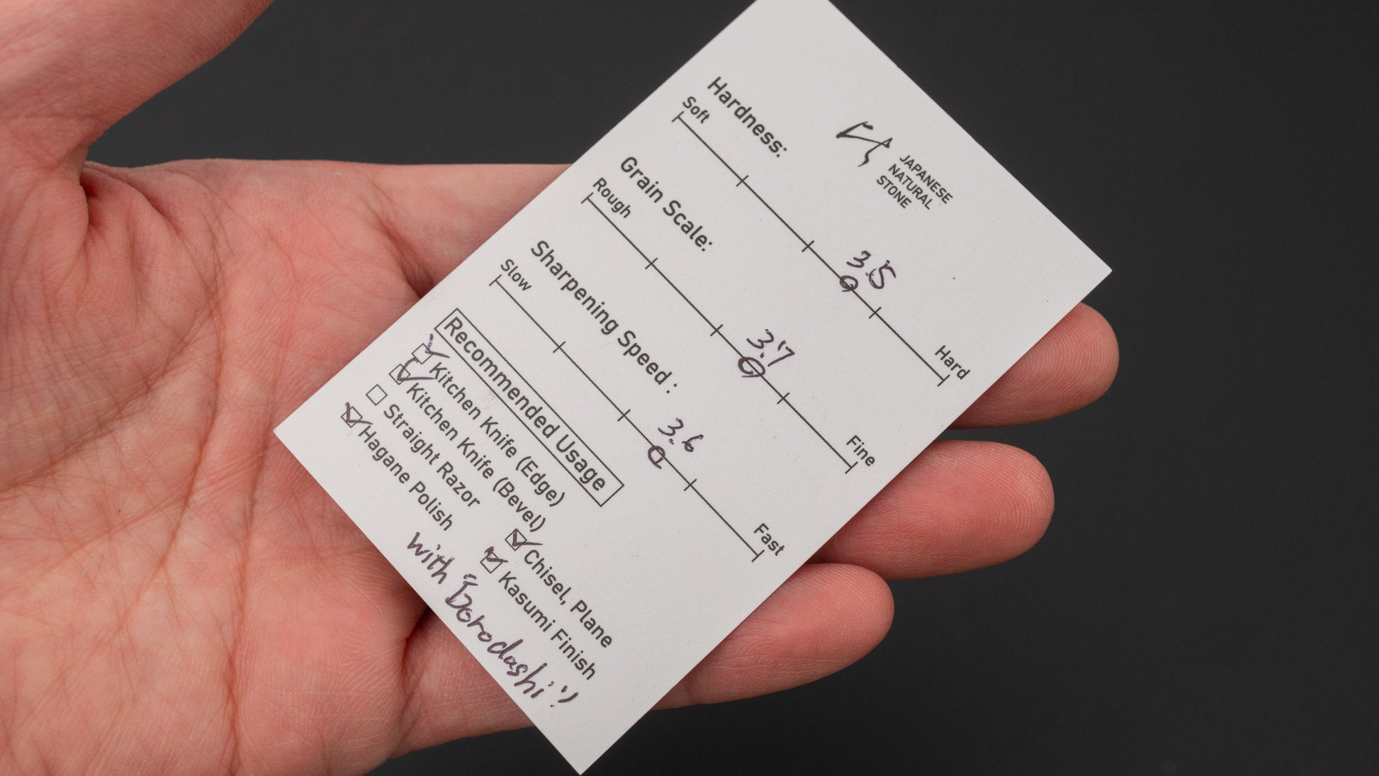 Recommended Usage: Kitchen Knife (Edge), Kitchen Knfie (Bevel), Chisel, Plane, Hagane Polish, Kasumi Finish with "Dorodashi"