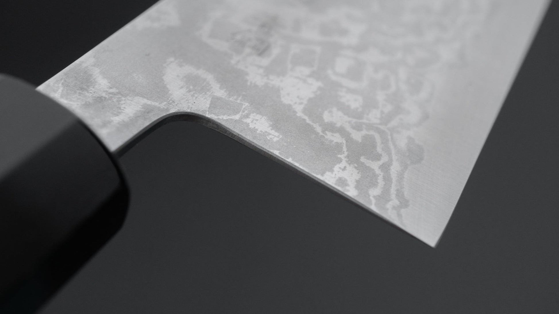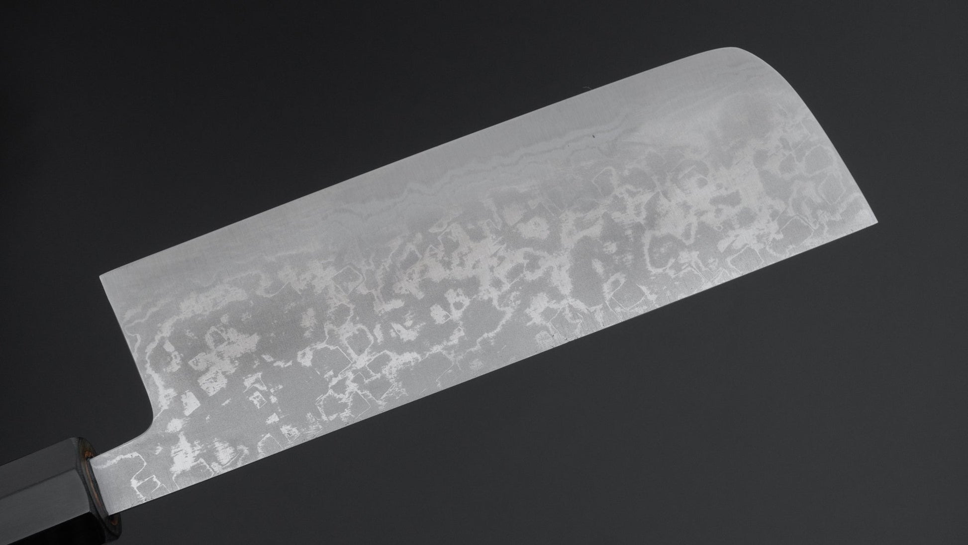 Dit is een mes van koolstofstaal. Koolstofstaal is een niet-roestvrij staal dat niet genoeg chroom en/of nikkel bevat om het te beschermen tegen oxidatie. Als gevolg daarvan reageert het op vocht en zuurstof. Hoewel dit misschien als een nadeel klinkt, is het eigenlijk een belangrijk kenmerk. Koolstofstaal vormt na verloop van tijd een unieke patina, is gemakkelijk te slijpen en biedt uitstekende randbehoud.