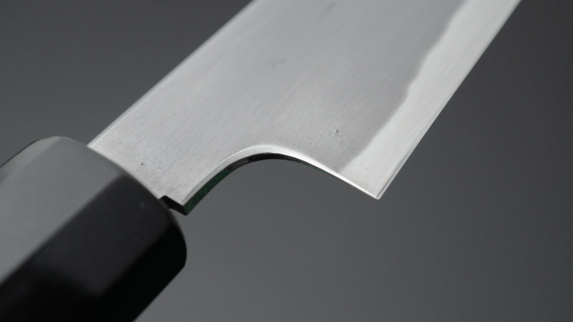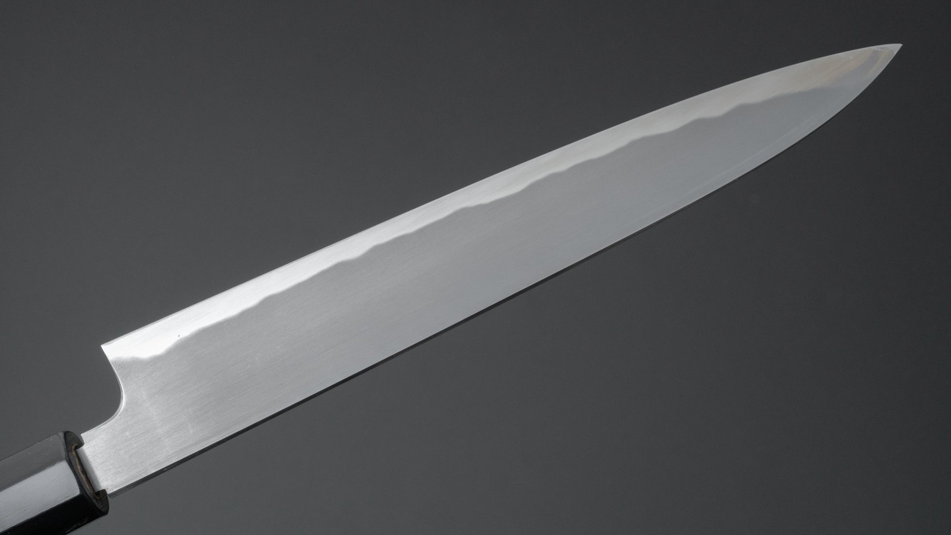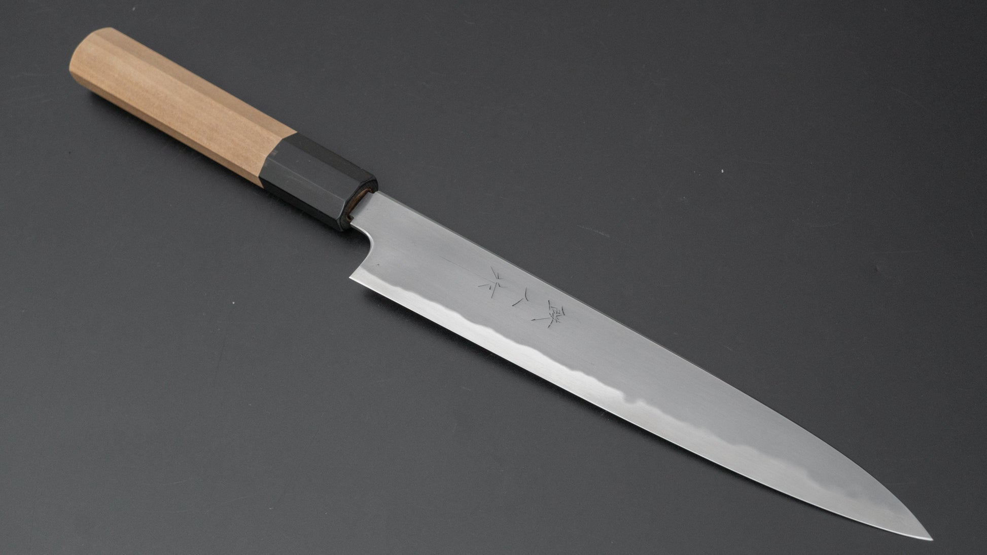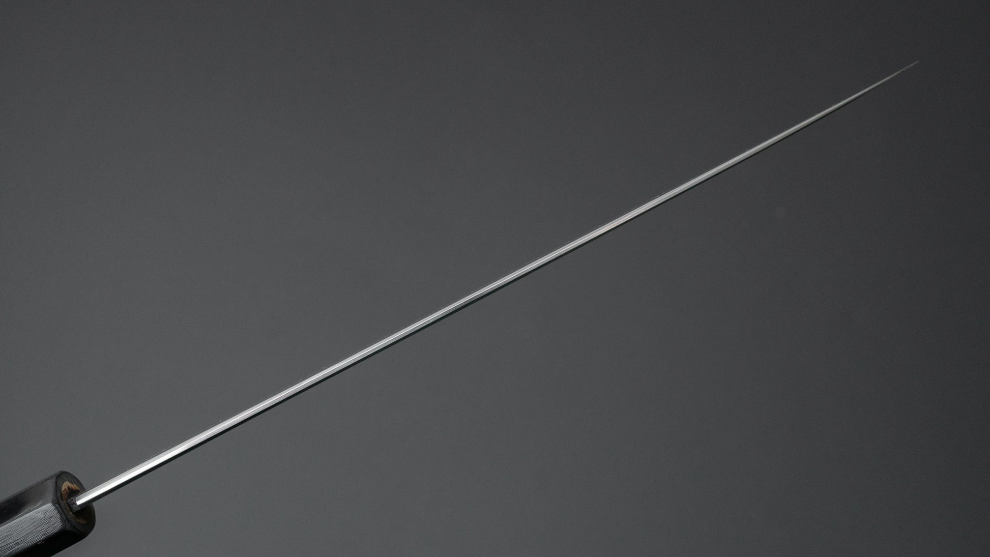 The Japanese slicer. A more specific knife shape ideal for portioning, trimming and finely slicing large cuts of meat, roasts, poultry or fish. The long and thin shape greatly reduces drag and is ideal to make long drawing cuts to thinly slice protein with high precision.