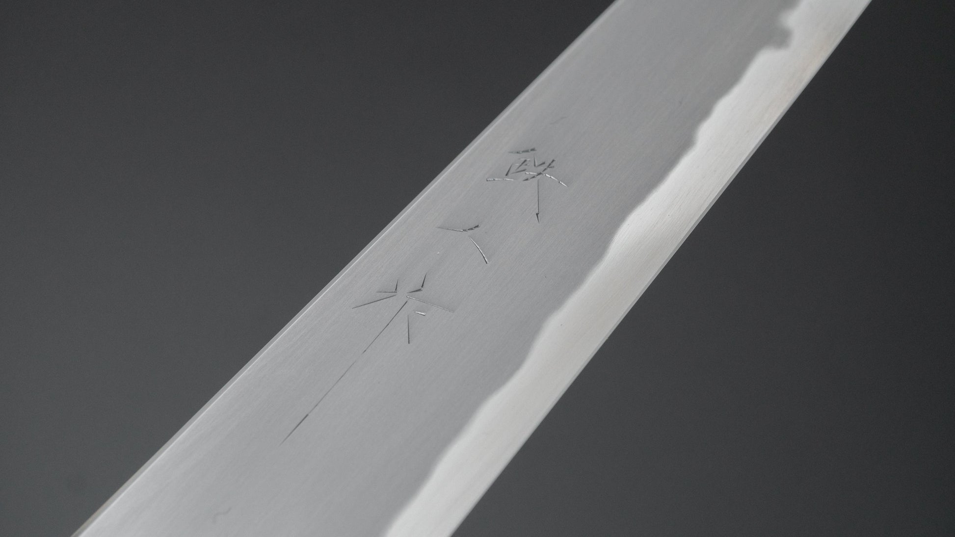 Het slijpen van Myojin Sans wordt gekenmerkt door zeer gelijkmatige, dunne, convexe (hamaguri) afschuiningen, superieure snijprestaties, sterke geometrie en uitstekende glans.