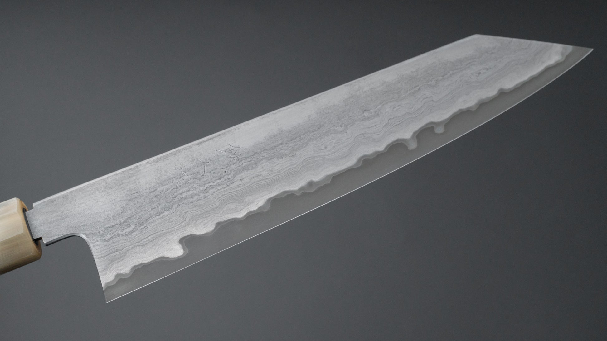 Het slijpen van Myojin Sans wordt gekenmerkt door zeer gelijkmatige, dunne, convexe (hamaguri) afschuiningen, superieure snijprestaties, sterke geometrie en uitstekende glans.