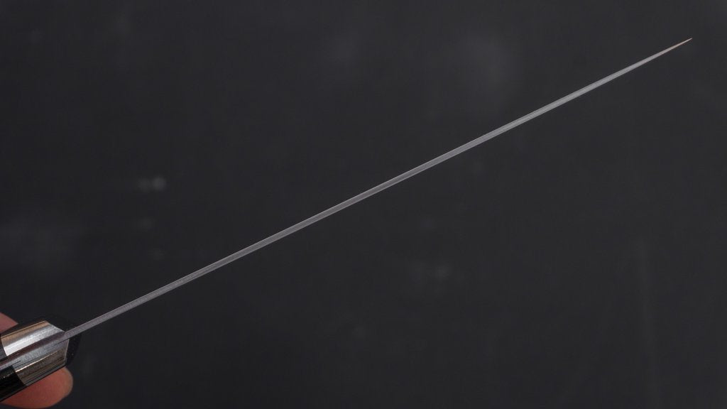De T10-serie is gemaakt van VG-10-staal, een beroemd Japans roestvrij staal met een hoog koolstofgehalte, bekend om zijn sterkte, taaiheid en roestbestendigheid. Dit staal behoudt zijn scherpte uitstekend en biedt uitstekende scherpte en duurzaamheid voor dagelijks gebruik. Hoewel deze T10-serie mogelijk iets sneller zijn scherpte verliest dan zijn duurdere grote broer, de TP, gemaakt met SG2, behoudt hij toch indrukwekkende snijprestaties. Deze messen zijn volledig met de hand geslepen en geslepen, wat zorgt voor hoogwaardig vakmanschap in elk lemmet. De VG-10-serie is een super solide keuze voor wie op zoek is naar een duurzaam en scherp mes en tevens een van onze favoriete messen om cadeau te doen.