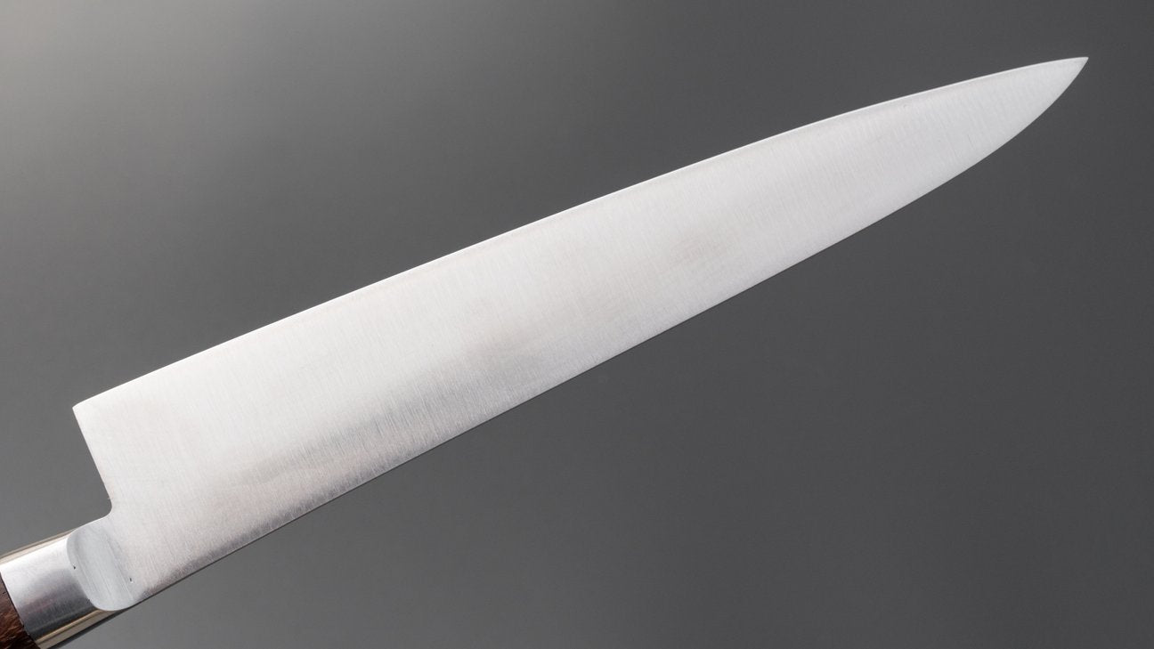 Extra: Er is geen definitief "goed of fout" tussen koolstof- en roestvrijstalen messen, maar koolstofstaal wordt vaak als superieur beschouwd voor traditionele methoden om messen te maken. Als gevolg hiervan bieden koolstofstalen messen over het algemeen een betere randbehoud, slijpvermogen en algehele prestaties vergeleken met andere in dezelfde prijsklasse.