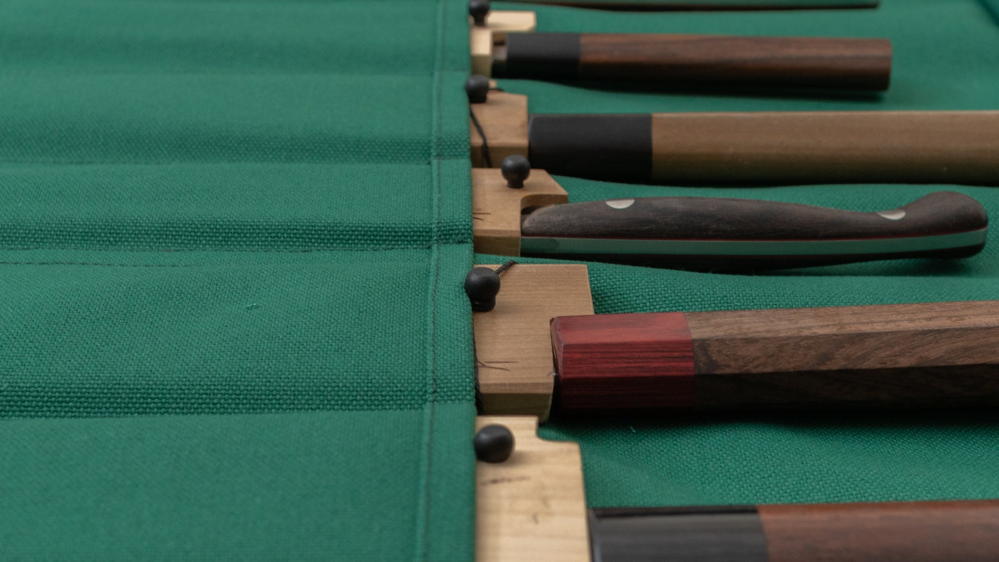 hese durable and functional Hanpu canvas knife rolls are handmade by HI-CONDITION in Asakusa-bashi, Tokyo. Designed to store your knives blade-down in the sleeves, they help preserve both the appearance and edges of your knives. They comfortably accommodate knives with protectors (see picture).