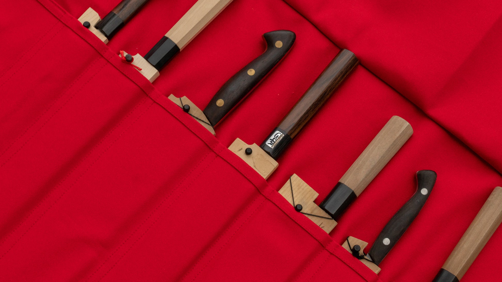 We raden ten zeerste aan om een snijrandbeschermer, zoals een saya, te gebruiken wanneer u uw messen in een messenrol bewaart – en deze HI-CONDITION rollen vormen daarop geen uitzondering. De rol is machinewasbaar en kan indien nodig gestreken worden, maar doe hem niet in de droger.
