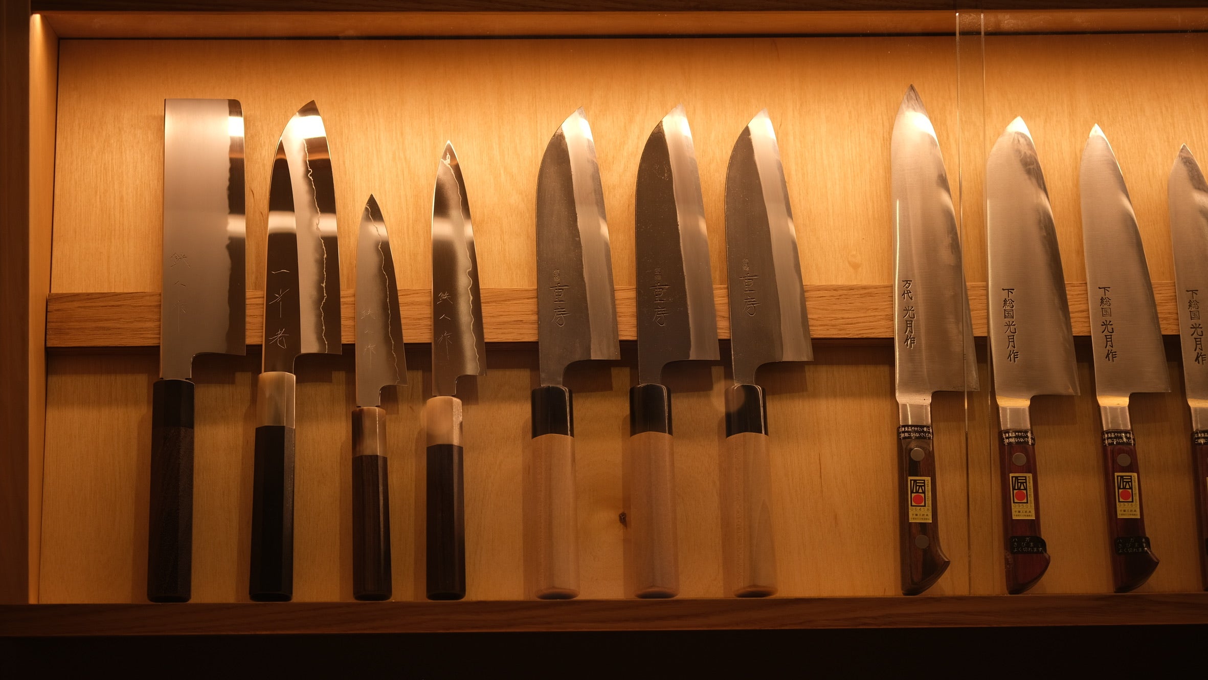 10 individual Jiro's, a bunch of Tanaka Kyuzo and Izo, including a very special Tanaka Kyuzo, lots of Tetsujin including three 240mm Metals Flows, even some Sigefusa and lots more.