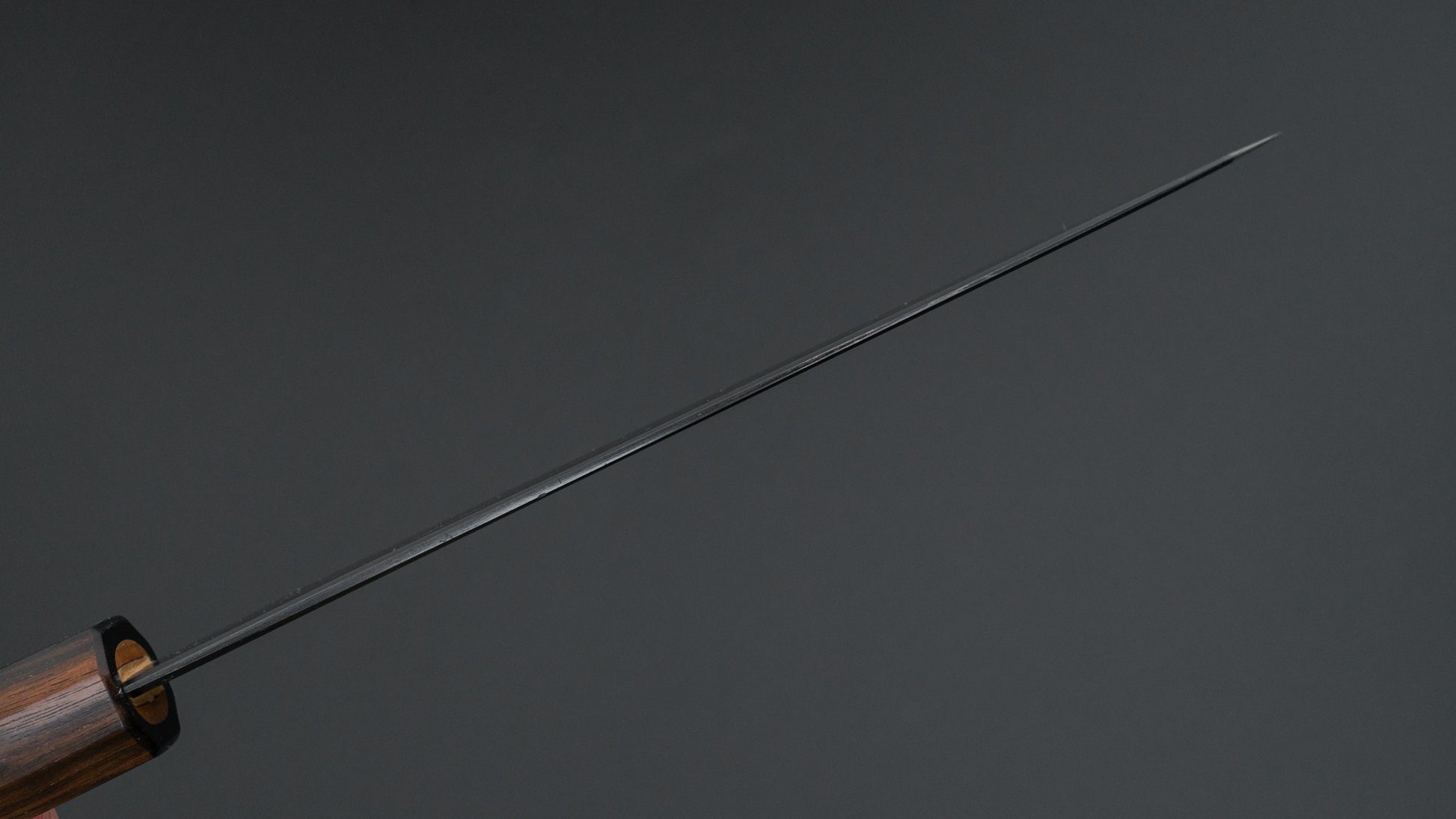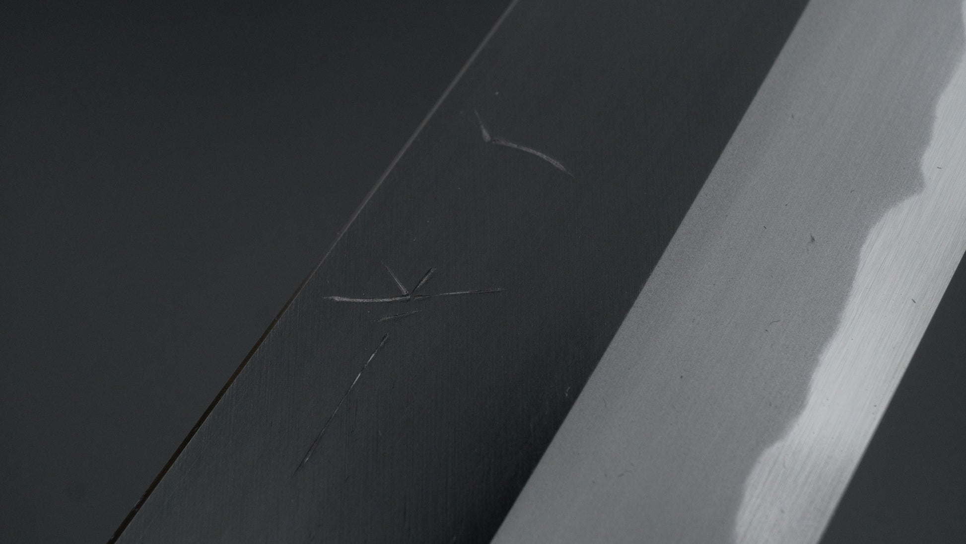 This is a carbon steel knife. Carbon steel is a non-stainless steel that lacks sufficient chromium and/or nickel to protect it from oxidation. As a result, it reacts to moisture and oxygen. While this may sound like a downside, it’s actually a key feature. Carbon steel forms a unique patina over time, is easy to sharpen, and offers excellent edge retention.